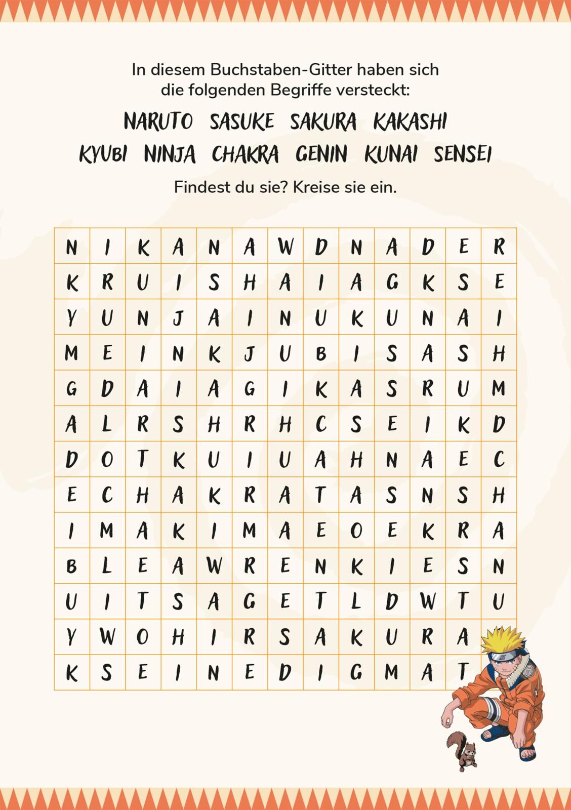 Ninjastarker Beschäftigungsblock für Schulkinder! Dieser Beschäftigungsblock enthält Rätsel, Labyrinthe, Denkspiele, Buchstabengitter und vieles mehr. Die Ninjas aus NARUTO führen dabei durch die Aufgaben. Ideal für Kinder ab 6 Jahren. ...