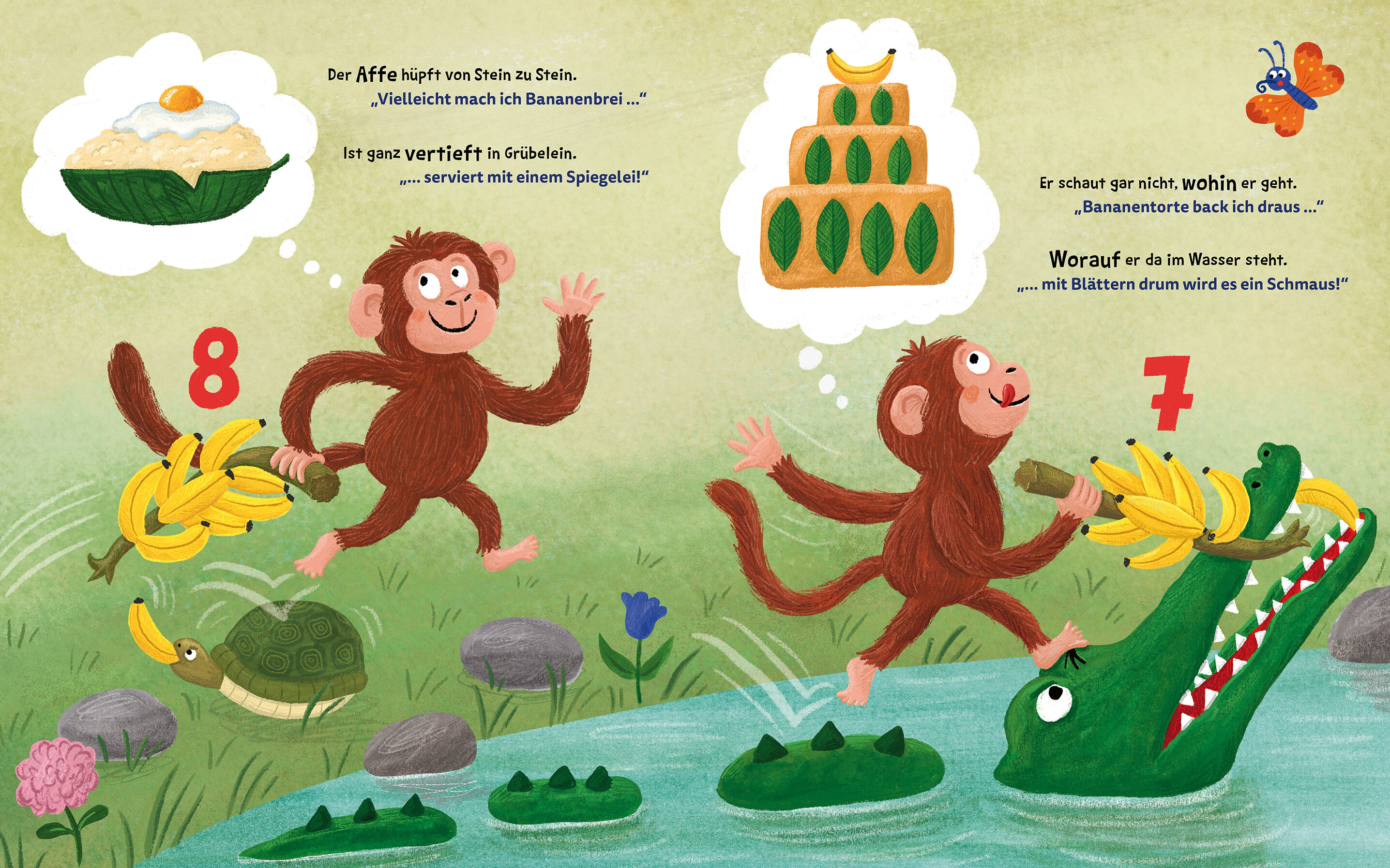 Die Zahlen 1-10 mit Bananen verstehen: Ein lustiges Kinderbuch zum Vorlesen und zum Zählen lernen. Njam, njam! Der Affe hat eine Bananenstaude mit zehn saftigen Bananen gefunden. Welches Gericht soll er mit dieser süßen Frucht nur zubereiten? Bananenbrei mit ...