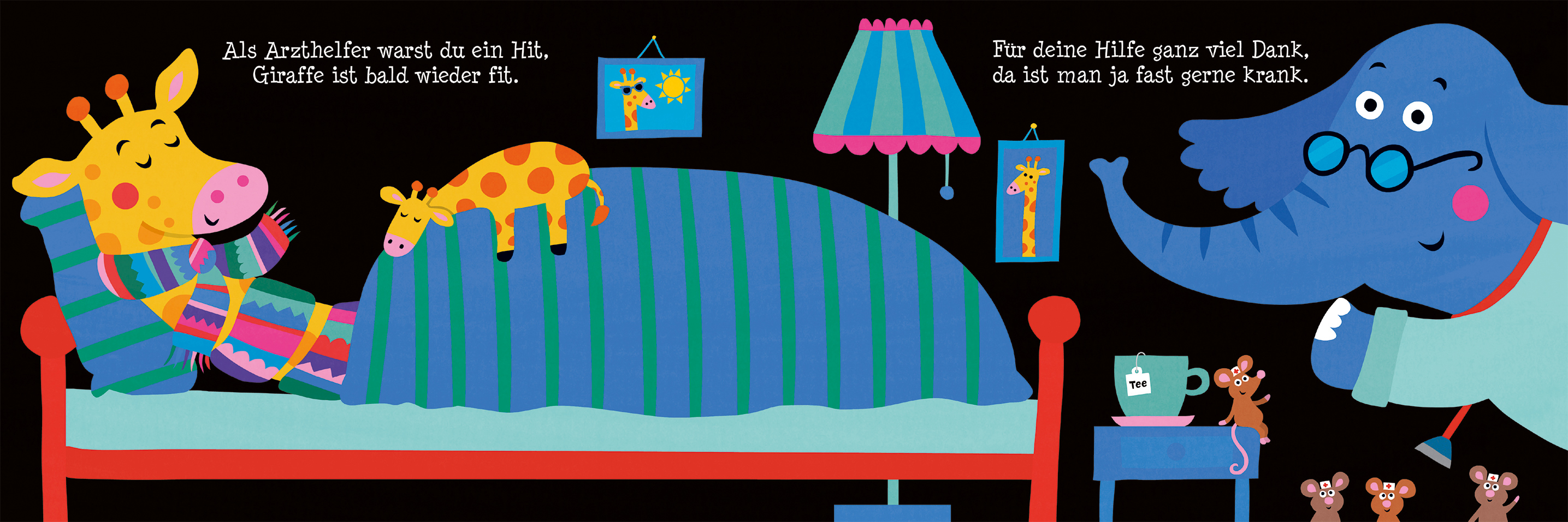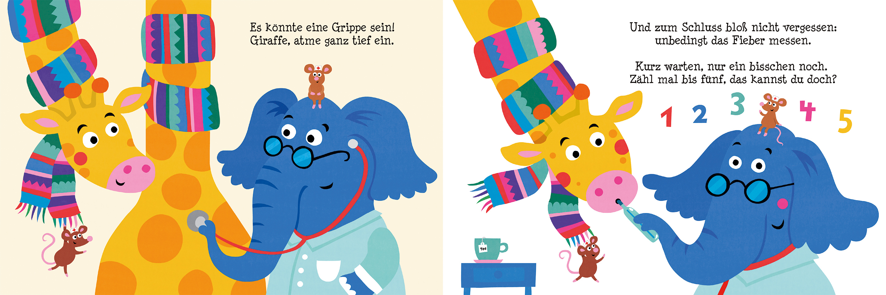Holtfreter, Giraffe Ein tierisches, gut gereimtes Bilderbuch über das Gesundwerden. Ideal zum allerersten Vorlesen. Giraffe ist krank: Ihr langer Hals tut schrecklich weh und ihre Nase läuft. Da rufen wir besser mal bei Dr. Ele an, denn Giraffe muss gründlich ...
