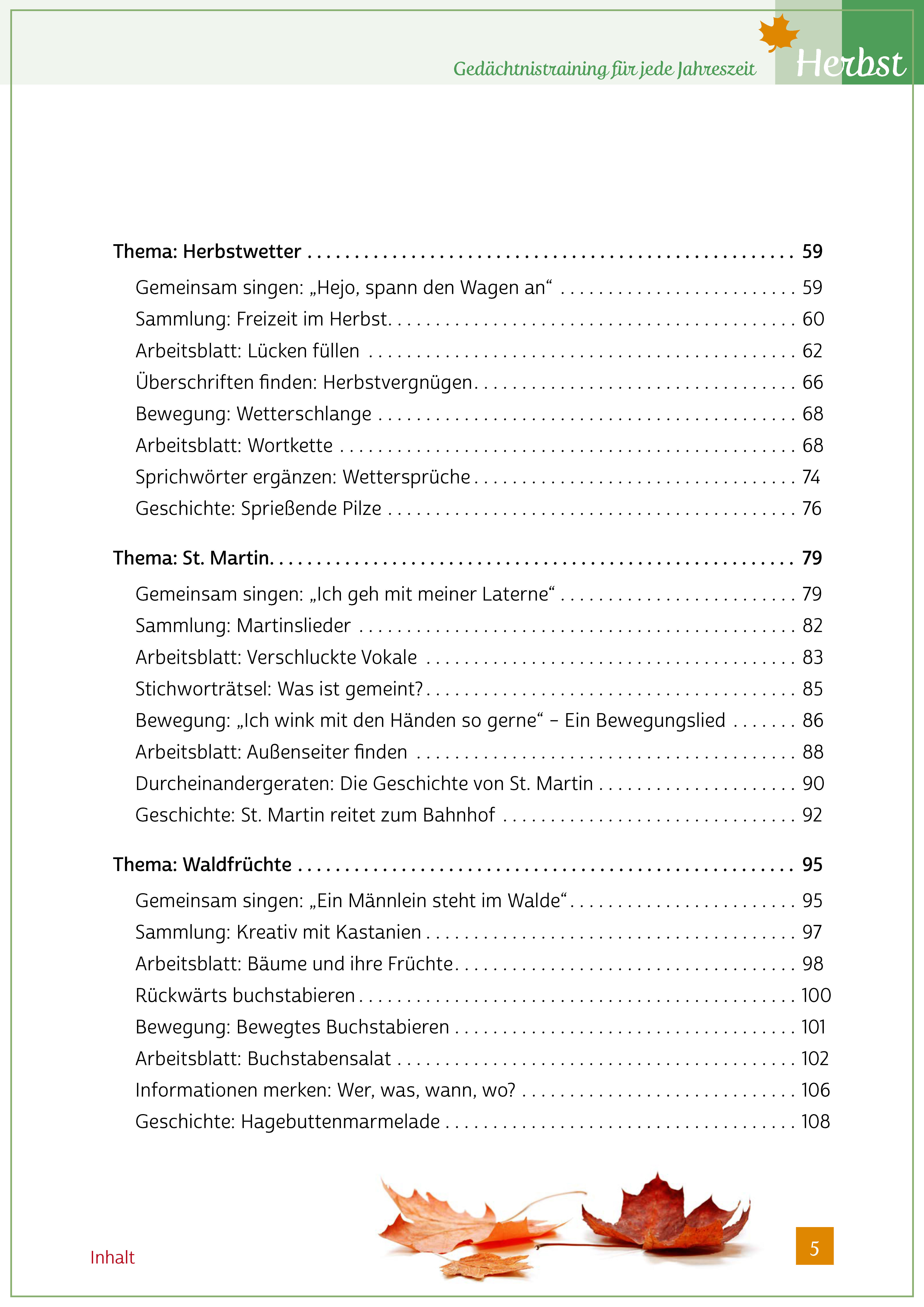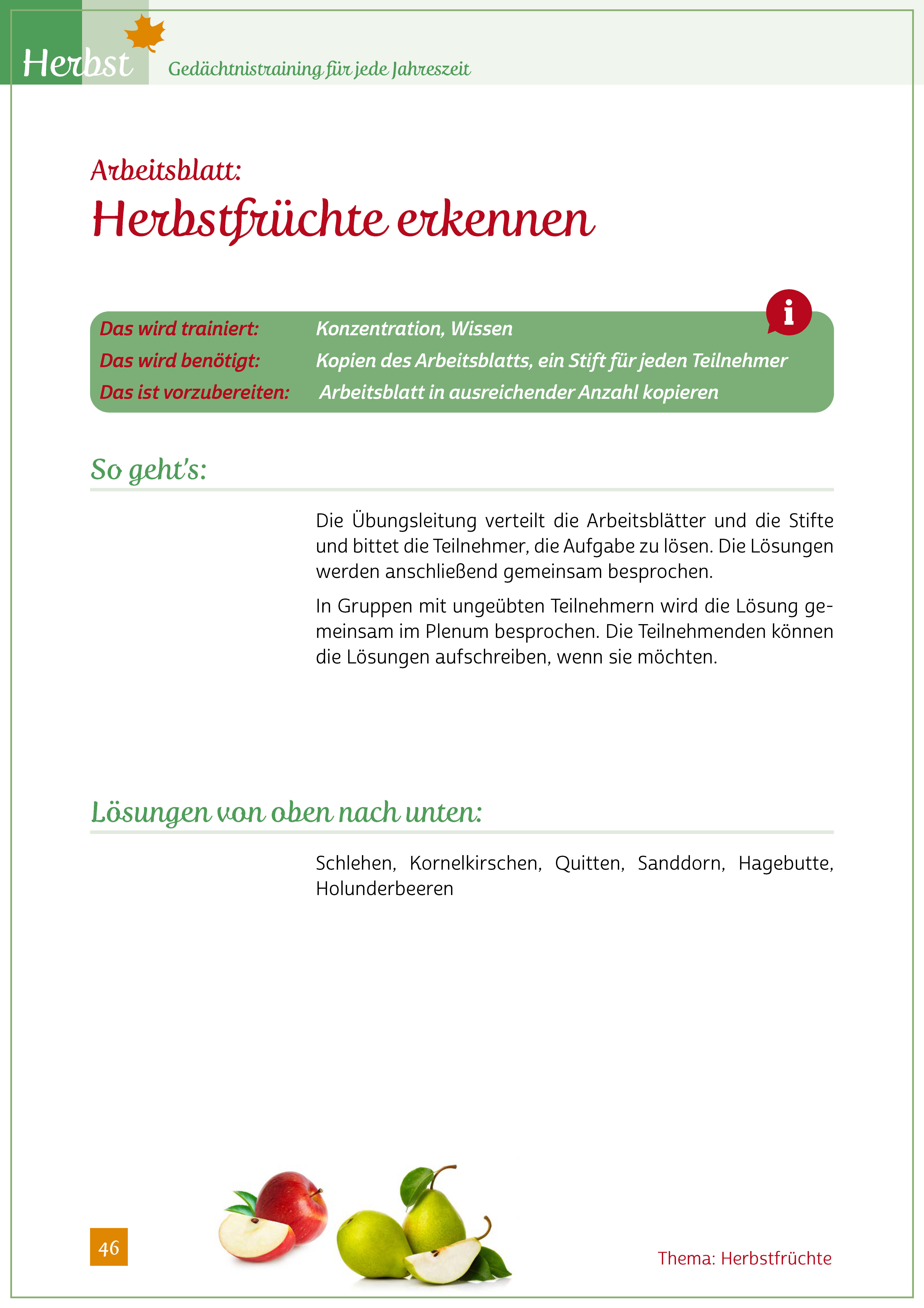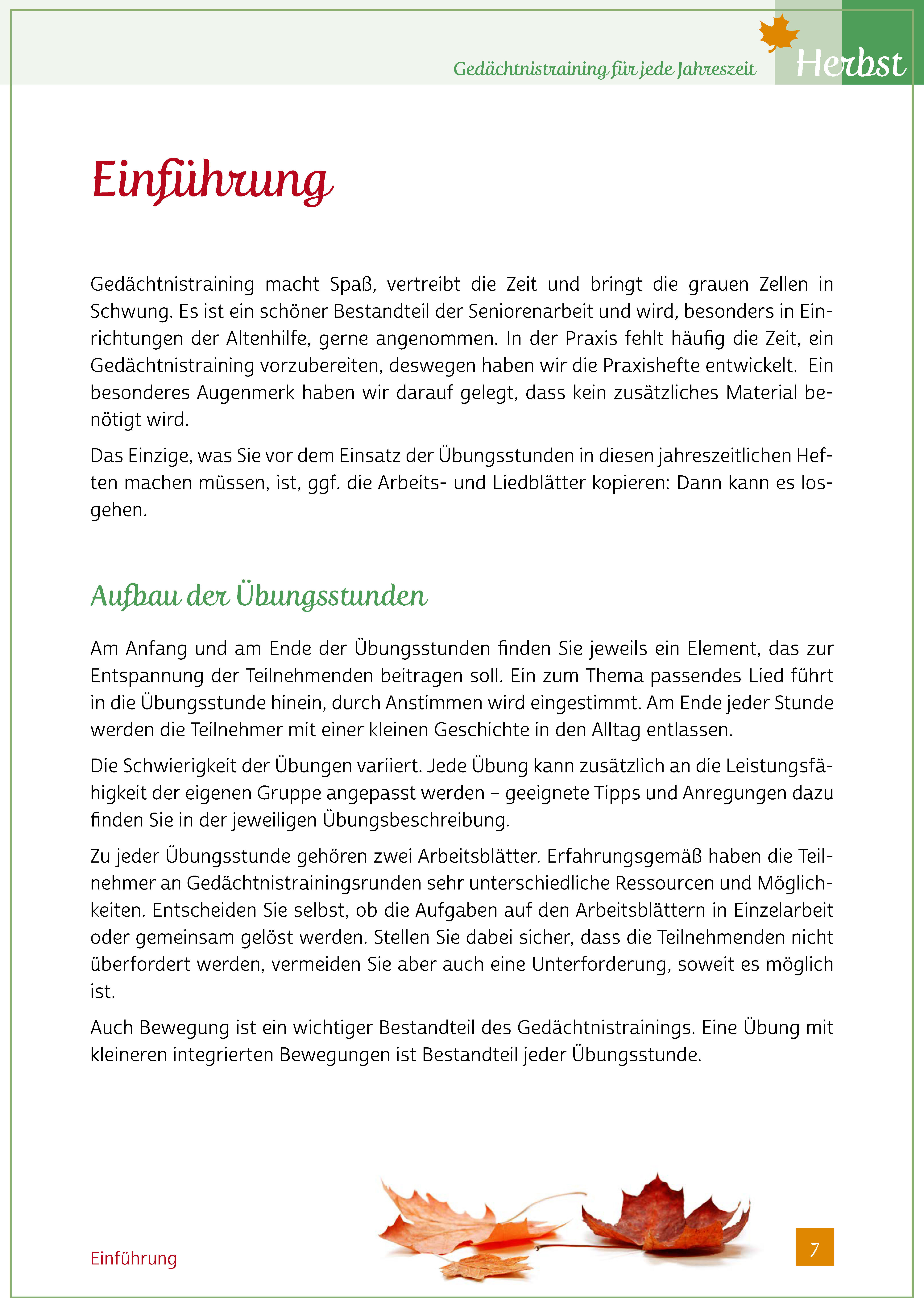 Gedächtnistraining für jede Jahreszeit - Herbst Trübe Herbst- und Wintertage? Lassen sich perfekt nutzen, um die grauen Zellen in Schwung zu bringen. Praxisheft schnappen und los geht das Gedächtnistraining! Die Themenstunden lassen sich ohne viel Vorbereitung...