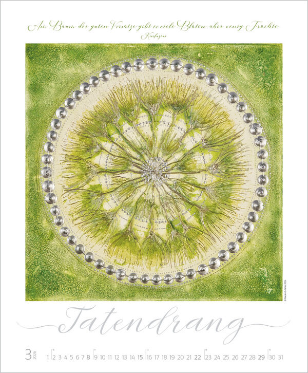 Kleine Kraftzentren - das sind die exklusiv für Korsch gestalteten neuen Werke der Künstlerin Natalia Schäfer. Die Ornamente mit Elementen aus Mythologie, sakraler Geometrie und chinesischer Philosophie ruhen auf starken Farben und sind mit inspirierenden Zit...