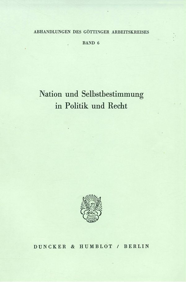 Inhalt Inhalt: H. Rumpf, Die Nation in rechtlicher Sicht - B. Meissner, Der Nationsbegriff und die Frage nach dem Subjekt oder Träger des Selbstbestimmungsrechts - W. Schlau, Nation und Volk in soziologischer Sicht - W. Fiedler, Der Zielkonflikt zwischen weste...
