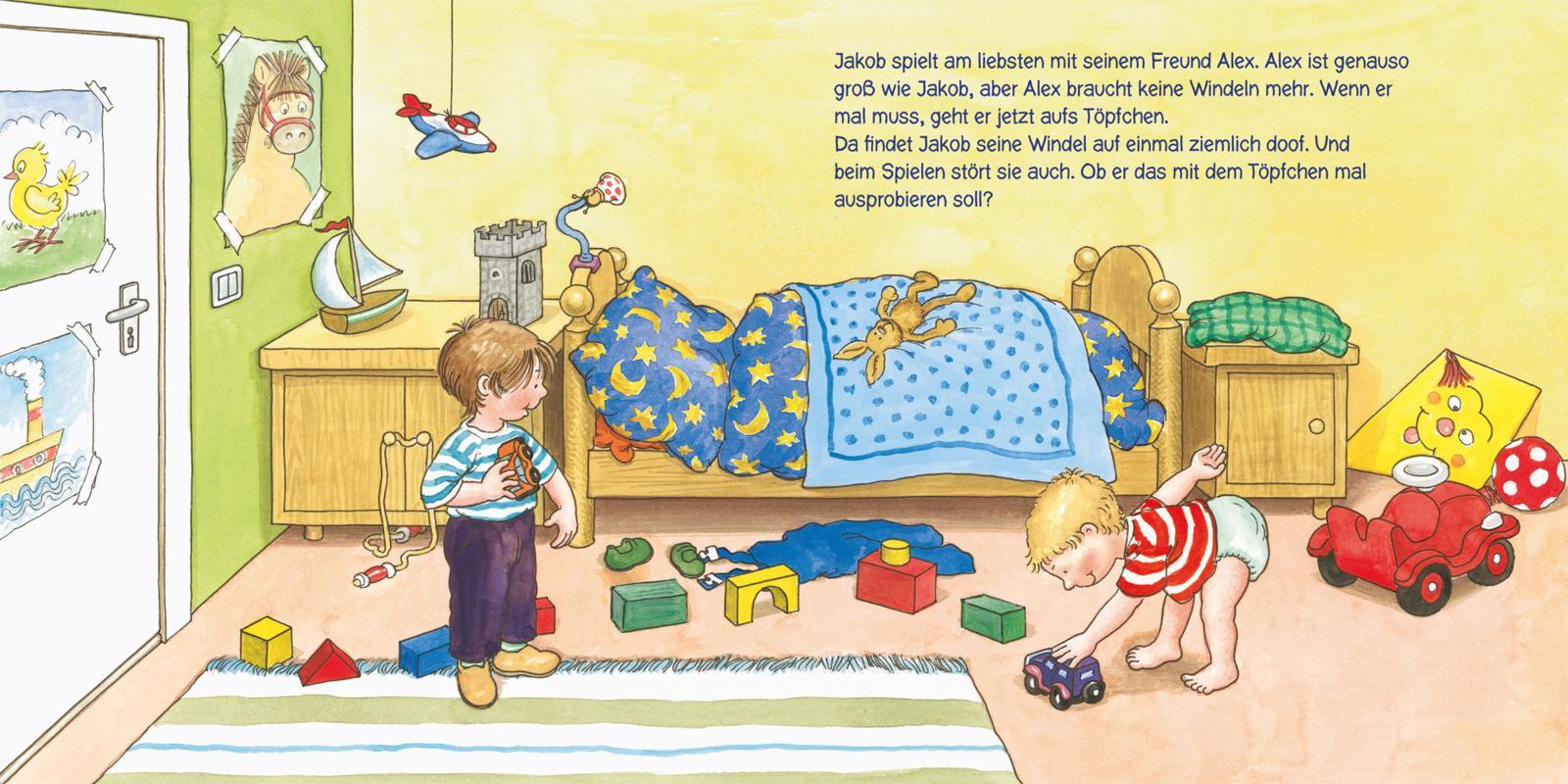 Auf Windeln hat Jakob einfach keine Lust mehr. Und die Sache mit dem Töpfchen ist gar nicht so schwer... Die neuen Jakob-Pappenbücher: Jakob kann nicht einschlafen. Gut, dass es Mama, Papa und Conni gibt. Die kennen eine Menge toller Dinge, die ganz schön müd...