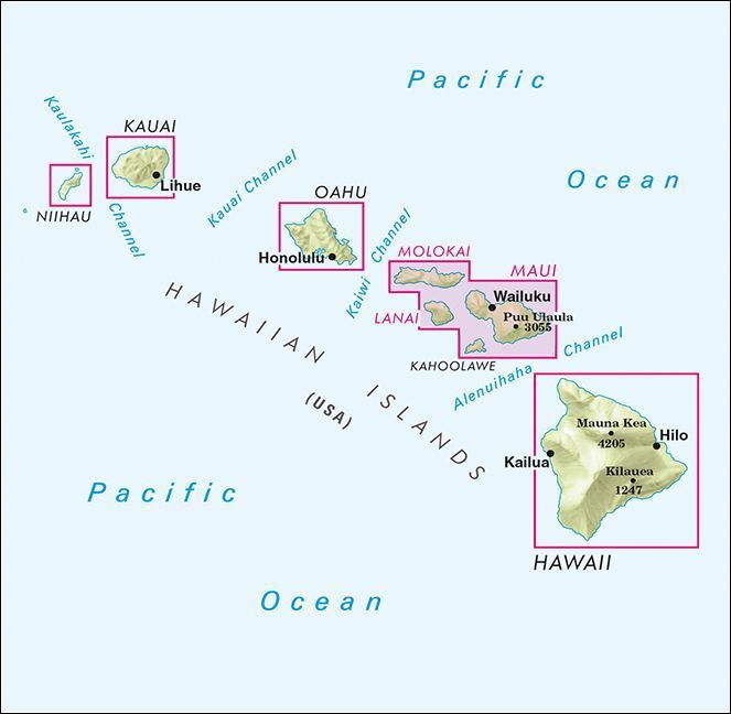 Landkarte mit Schummerung, Nebenkarten, Stadtplänen, touristischen Sehenswürdigkeiten, Kilometrierung. Autorentext Ha'iku 1: 25,000 Stadtplan Hana 1: 25,000 Stadtplan Kalaupapa 1: 35,000 Stadtplan Kaunakakai 1: 35,000 Stadtplan Kihei 1: 35,000 Stadtplan K...