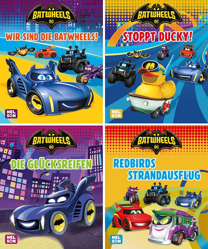 Die spannenden Einsätze von Batmans Fahrzeugen zum Mitnehmen! Dank der Batwheels sind die Straßen von Gotham City sicher! Batmobil Bam, Motorrad Bibi, Auto Redbird, Flugzeug Batwing und Truck Buff halten als heldenhafte Fahrzeuge gemeinsam und an der Seite vo...