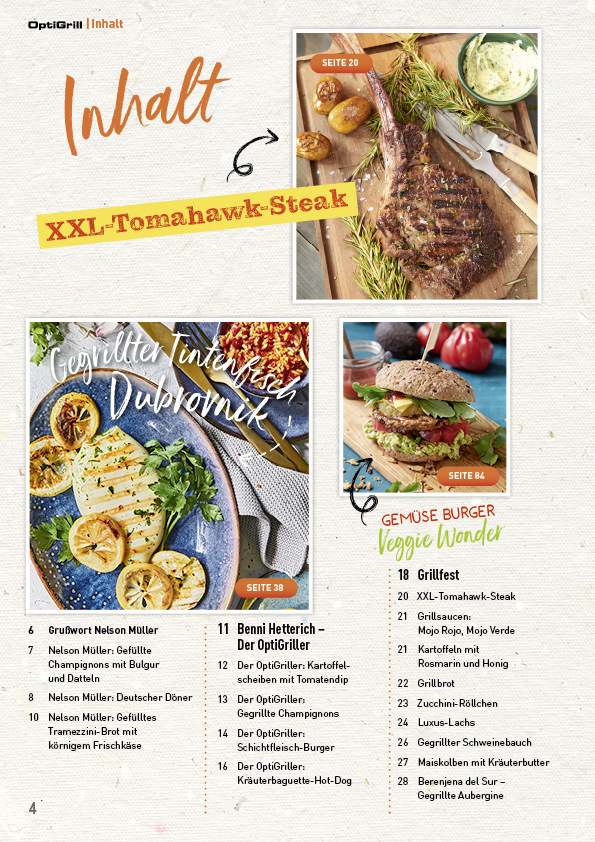 Das große Sommer-Grillfest Endlich da: Das neue OptiGrill-Magazin! Das neue Optigrill-Magazin enthält einen bunten Strauß Tipps, Tricks und natürlich Rezepten für den beliebten OptiGrill. Starkoch Nelson Müller stellt seine Lieblingsrezepte für den Optigrill v...