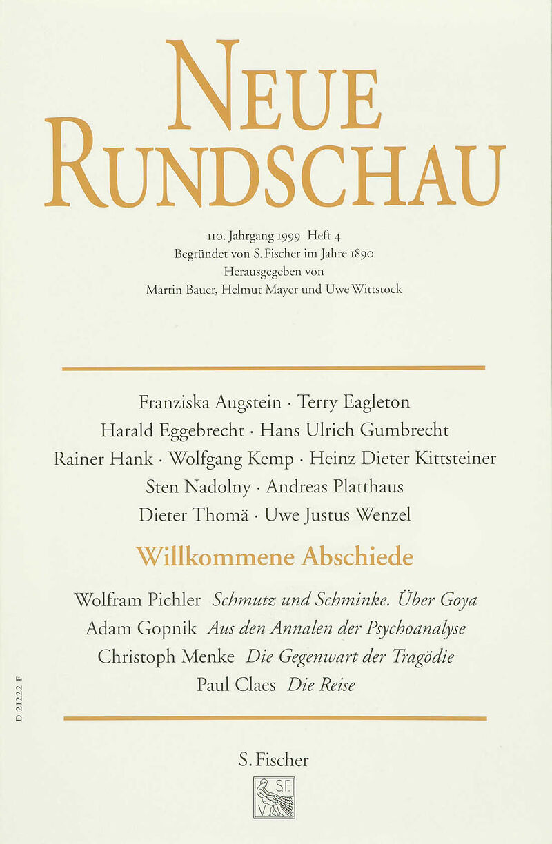Mit Beiträgen von Franziska Augstein, Terry Eagleton, Harald Eggebrecht, Hans Ulrich Gumbrecht, Rainer Hank, Wolfgang Kemp, Heinz Dieter Kittsteiner, Stan Nadolny, Andreas Platthaus, Dieter Thomä, Uwe Justus Wenzel