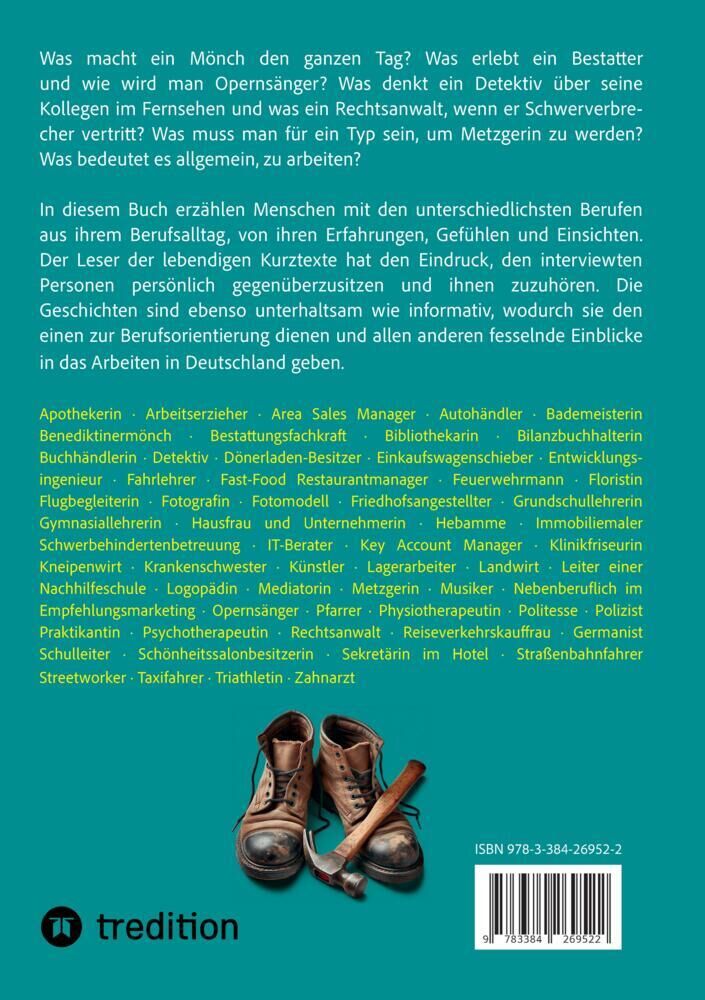 Was macht ein Mönch den ganzen Tag? Was denkt ein Detektiv über seine Kollegen im Fernsehen und was ein Rechtsanwalt, wenn er Schwerverbrecher vertritt? Was muss man für ein Typ sein, um Metzgerin zu werden? Jeder Beruf ist anders. Mit jedem Beruf lebt man and...