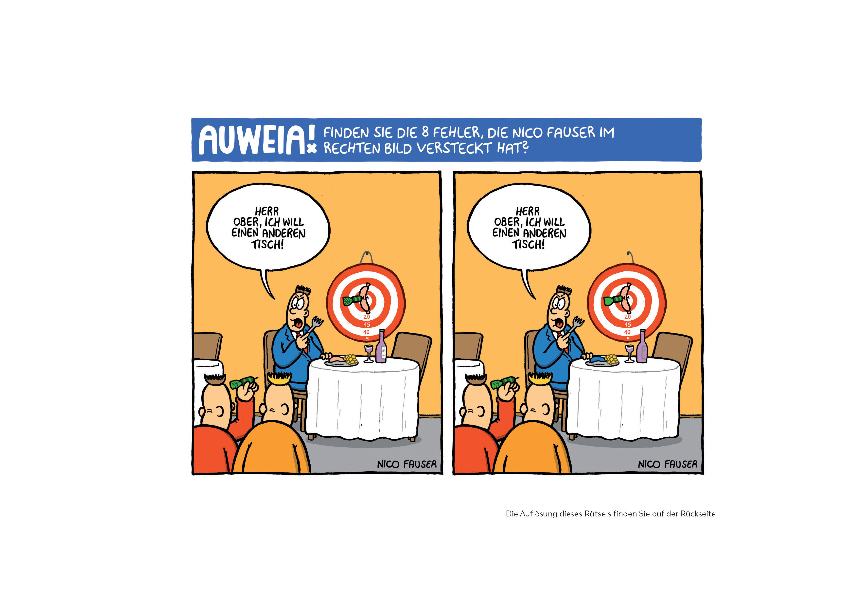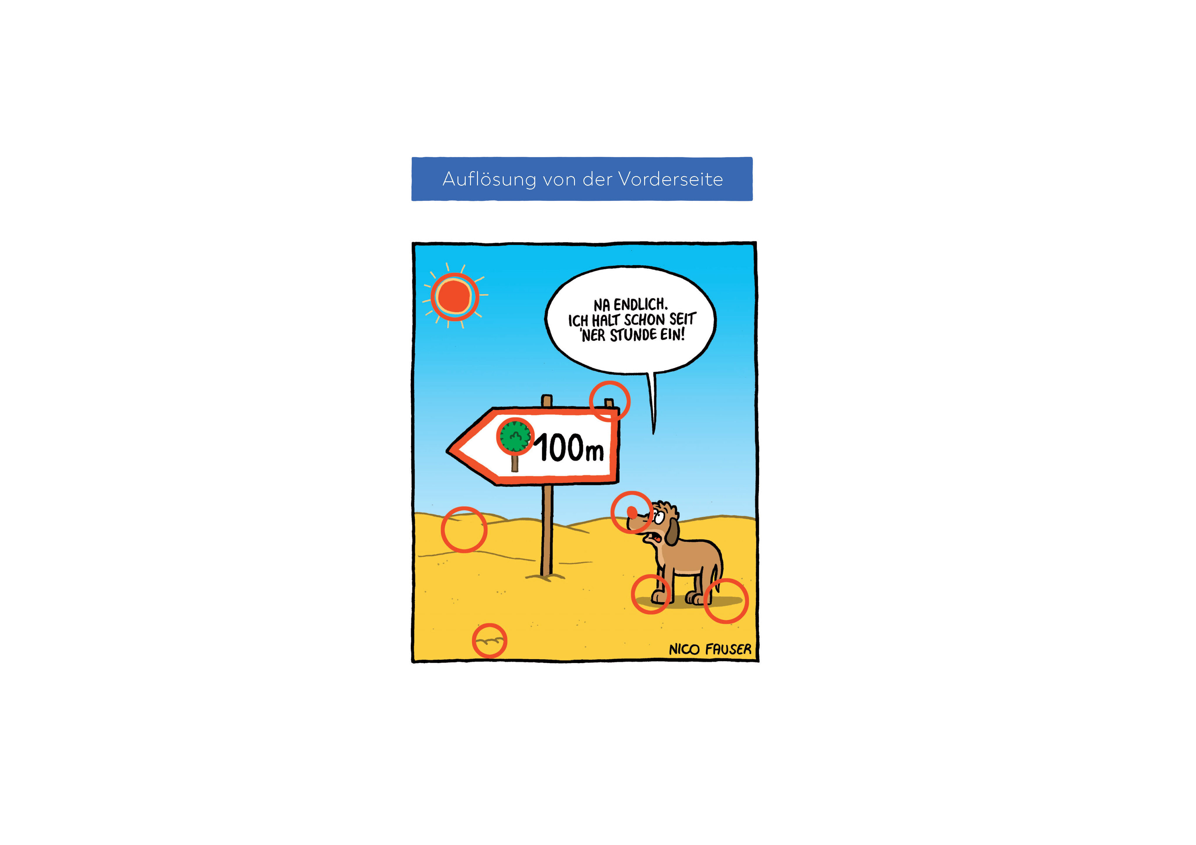 Es gibt neuen Rätselstoff für gewitzte Knobelfreunde! 70 Bilderwitze zum Totlachen fordern das Adlerauge heraus. Jeweils 8 Unterschiede gilt es zwischen zwei nahezu identischen Cartoons zu entdecken. So werden nicht nur die Lachmuskeln, sondern auch das Gehirn...