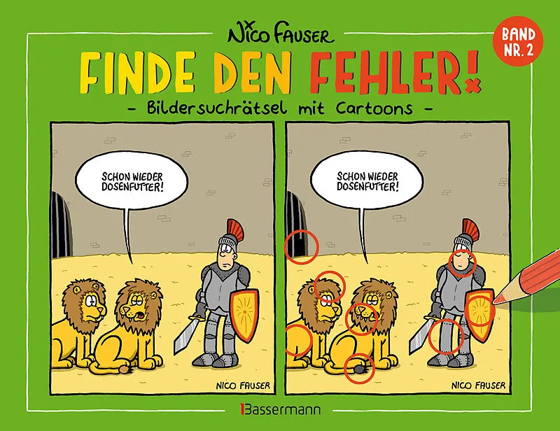 Es gibt neuen Rätselstoff für gewitzte Knobelfreunde! 70 Bilderwitze zum Totlachen fordern das Adlerauge heraus. Jeweils 8 Unterschiede gilt es zwischen zwei nahezu identischen Cartoons zu entdecken. So werden nicht nur die Lachmuskeln, sondern auch das Gehirn...