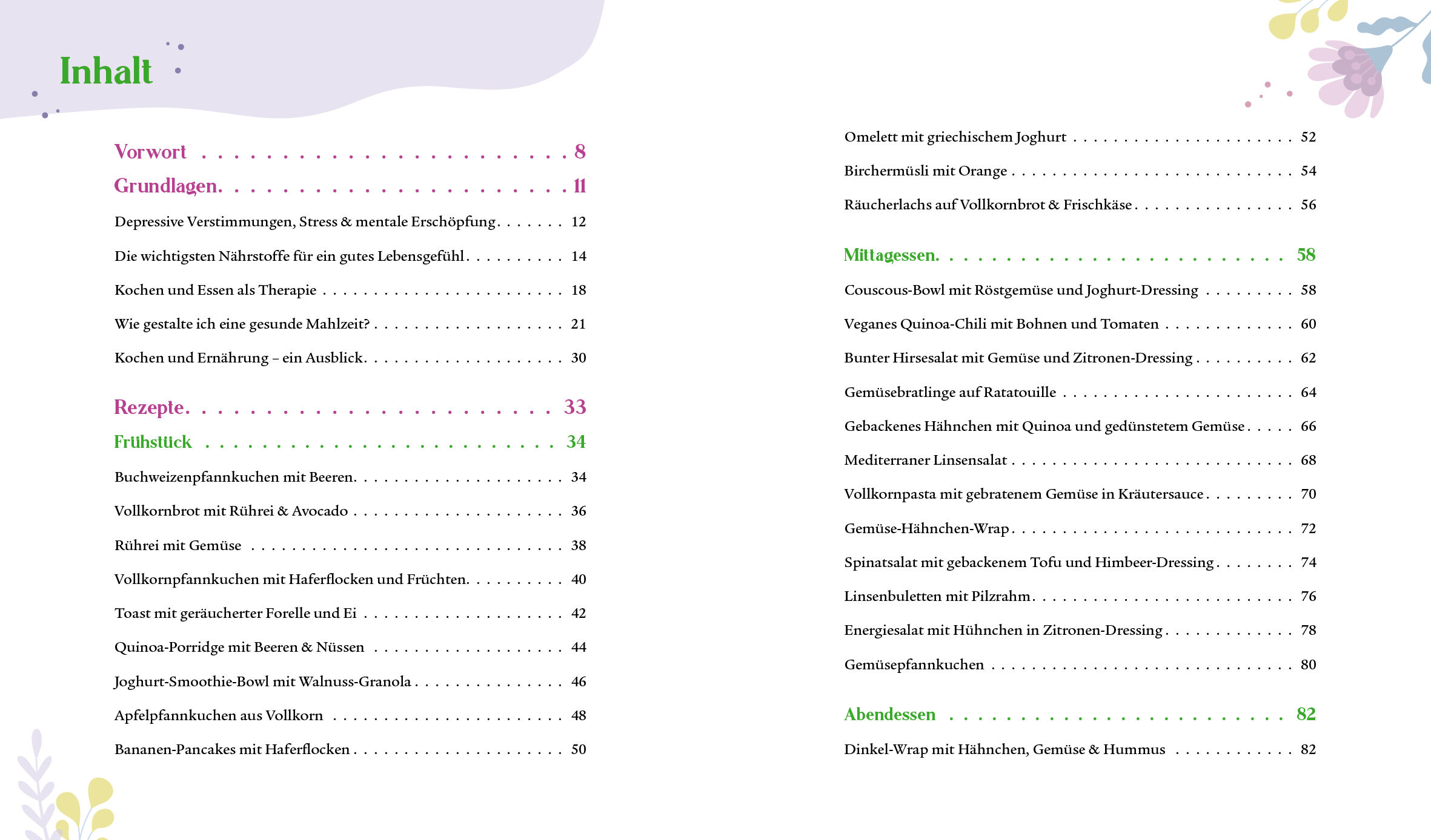 Ein gesunder, zufriedenstellender Alltag dank einer gezielten Auswahl von Nährstoffen? Das geht, denn jede Zutat hat eine Wirkung auf den Körper, und die Zusammensetzung mancher Rezepte hilft sogar bei depressiven Verstimmungen, mentaler Erschöpfung und Stress...