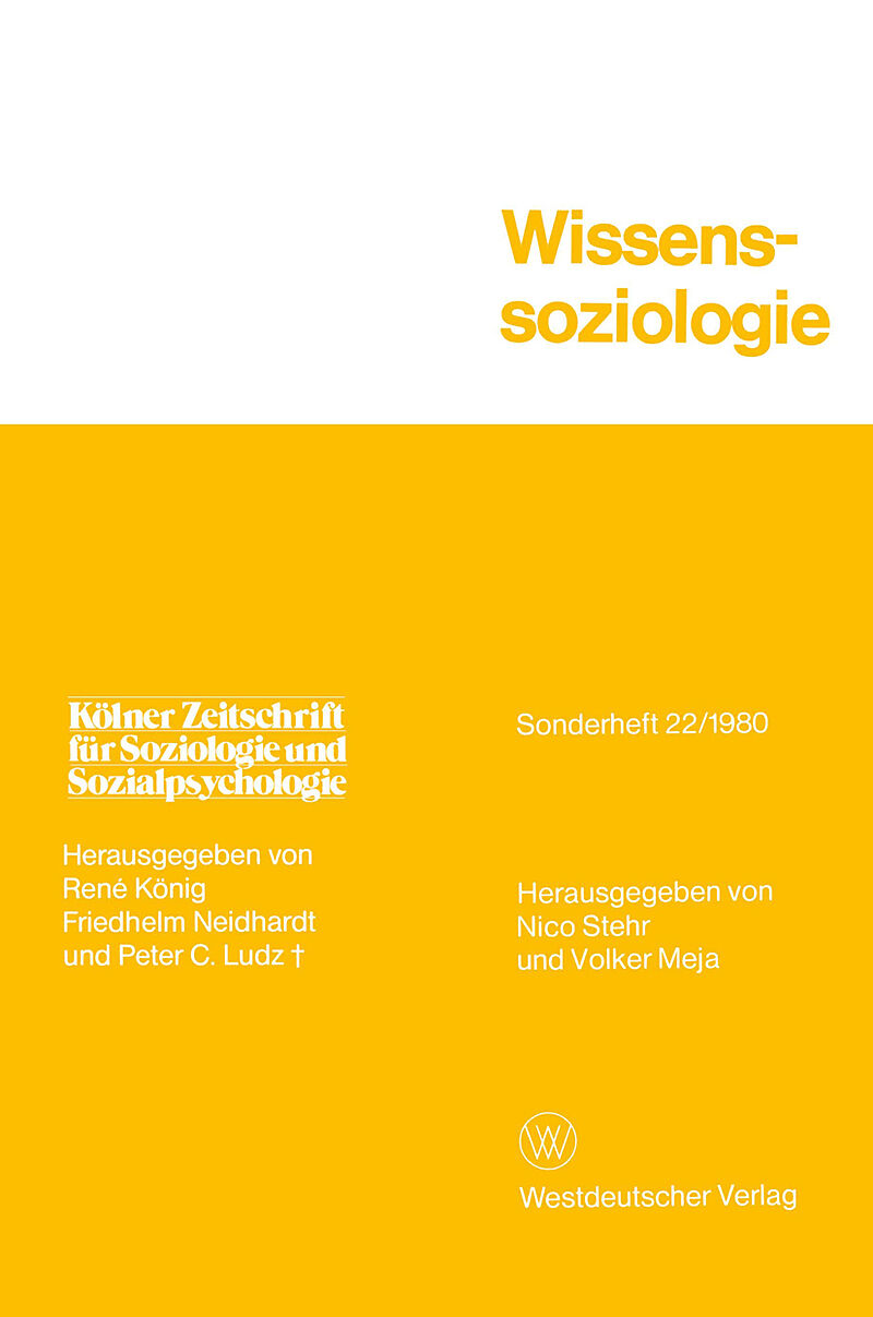 WISSEN UND GESELLSCHAFT Von Nico Stehr und Volker Meja Die Wissenssoziologie ist gerade heute ein in vieler Hinsicht eigenartiges und eher un typisches Spezialgebiet der Soziologie 1. Spa testens seit Ende der zwanziger Jahre ist sie zwar ein unbestrittener Be...WISSEN UND GESELLSCHAFT Von Nico Stehr und Volker Meja Die Wissenssoziologie ist gerade heute ein in vieler Hinsicht eigenartiges und eher un typisches Spezialgebiet der Soziologie 1. Spa testens seit Ende der zwanziger Jahre ist sie zwar ein unbestrittener Bestandteil der Soziologie, mehr als die Fragestellungen ande rer soziologischer Spezialgebiete treffen die von der Wissenssoziologie aufgeworfenen Fragen jedoch auf das kritische Interesse einer Vielzahl sozial-und geisteswissenschaft licher Disziplinen. Fast in jedem Lehrprogramm oder allgemeinen soziologischen Text findet die Wissenssoziologie in irgendeiner Form Beriicksichtigung. Oder noch generel ler formuliert, die Wissenssoziologie reprasentiert eine Art "kopernikanische Revolu tion" in der Analyse kultureller Produkte. Gleichzeitig kann aber kein Zweifel dariiber bestehen, daB sie bei aller, in vielen Fallen natiirlich nur oberflachlichen Anerkennung als legitimer Bestandteil der Soziologie eine im Vergleich insbesondere zu den grundle genden Spezialgebieten der Soziologie abweichende Position einnimmt. Dazu geh6rt etwa die Beobachtung, daB die intellektuelle Entwicklung der Wissenssoziologie iiber lange Zeitabschnitte eindeutig stagnierte, daB sich die Zahl der an der Wissenssoziolo gie interessierten Soziologen, gem essen am Wachstum der Soziologie insgesamt, in den 2 vergangenen drei J ahrzehnten kaum entscheidend verandert hat ; kurz, daB die Wis senssoziologie sich in eine Richtung entwickelte, in der sie eigentlich zunehmend nur von historischem Interesse war. Ein nicht leicht von der Hand zu weisender Eindruck ist deshalb, daB sich die Wissenssoziologie irgendwie selbst ersch6pft hat, und zwar lan ge bevor sie ihr umfassendes Programm iiberhaupt erst ein16sen konnte.