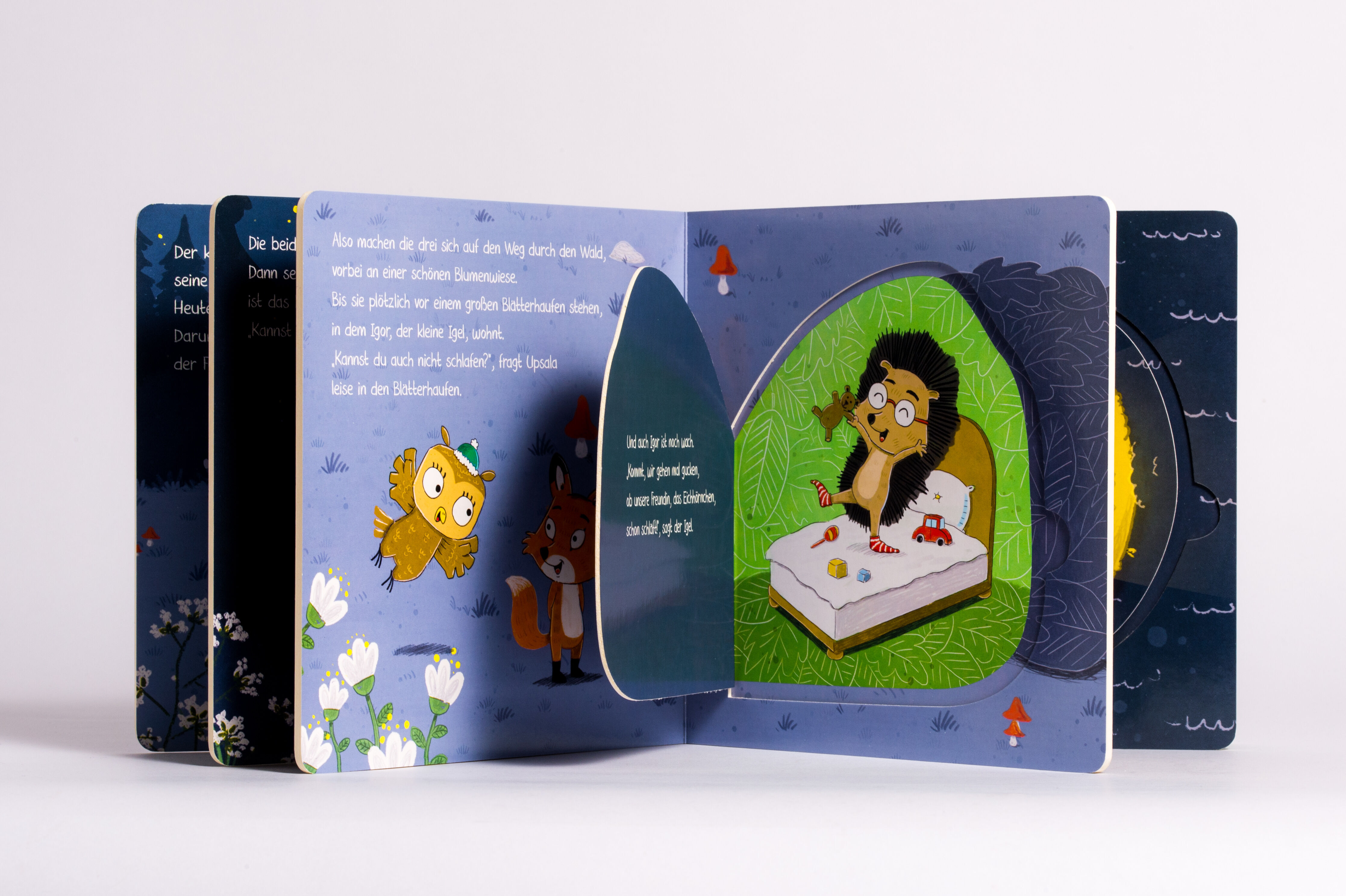 Bloß nicht ins Bett! Der kleine Hase Upsala tut sich schwer mit dem Einschlafen, weil er einfach noch nicht müde ist. Was bloß seine Freunde gerade machen? Upsala beschließt, einen nach dem anderen zu besuchen, und stellt fest, dass auch sie noch hellwach sind...