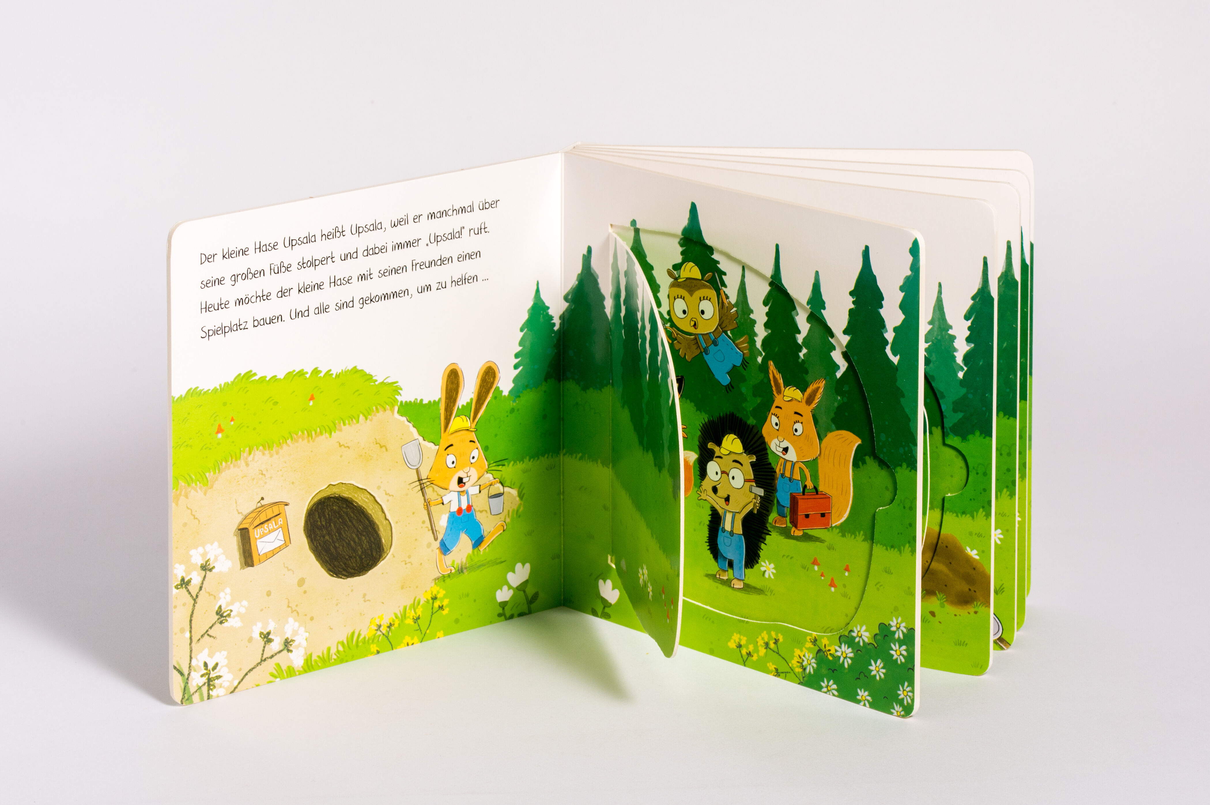 Los geht's zur Baustelle! Der kleine Hase Upsala und seine Freunde möchten mit Bagger, Kipplaster & Co. einen tollen Spielplatz bauen. Doch als der Spielplatz gerade fertig geworden ist, stolpert Upsala plötzlich über seine großen Füße und der Bagger bring...
