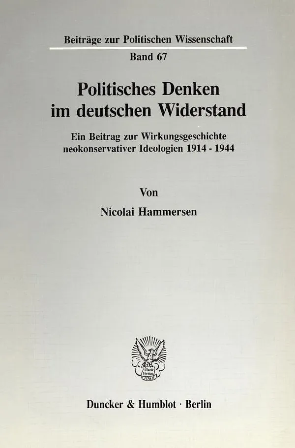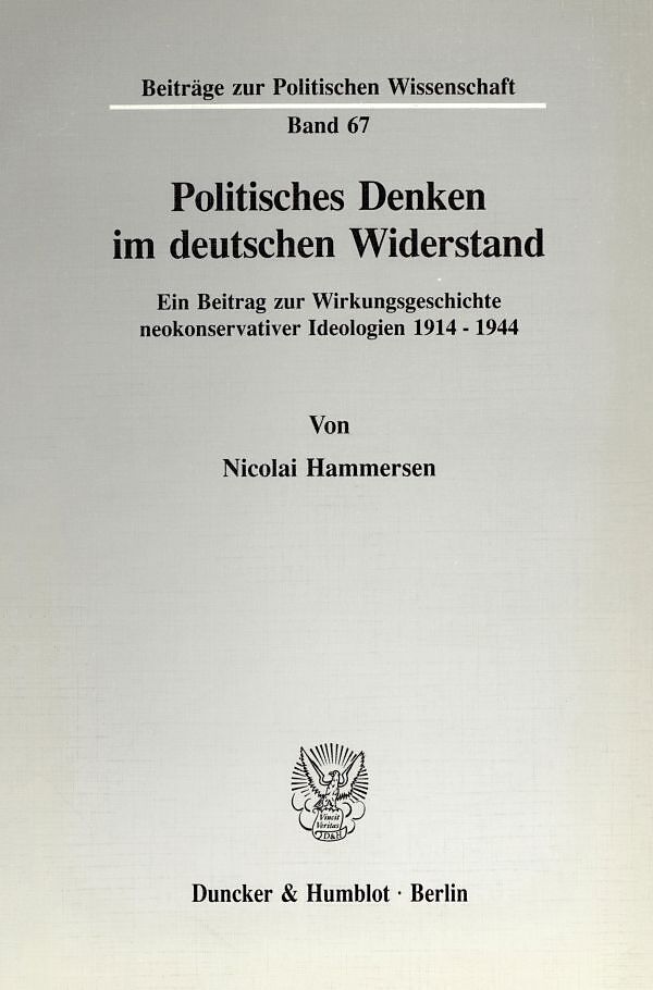 Eine Auseinandersetzung mit den politisch-historischen Wurzeln des deutschen Widerstandes wie auch seine geistesgeschichtliche Einordnung haben bislang noch nicht stattgefunden. Daß die Opposition gegen Hitler der neukonservativen Publizistik der Weimarer Repu...