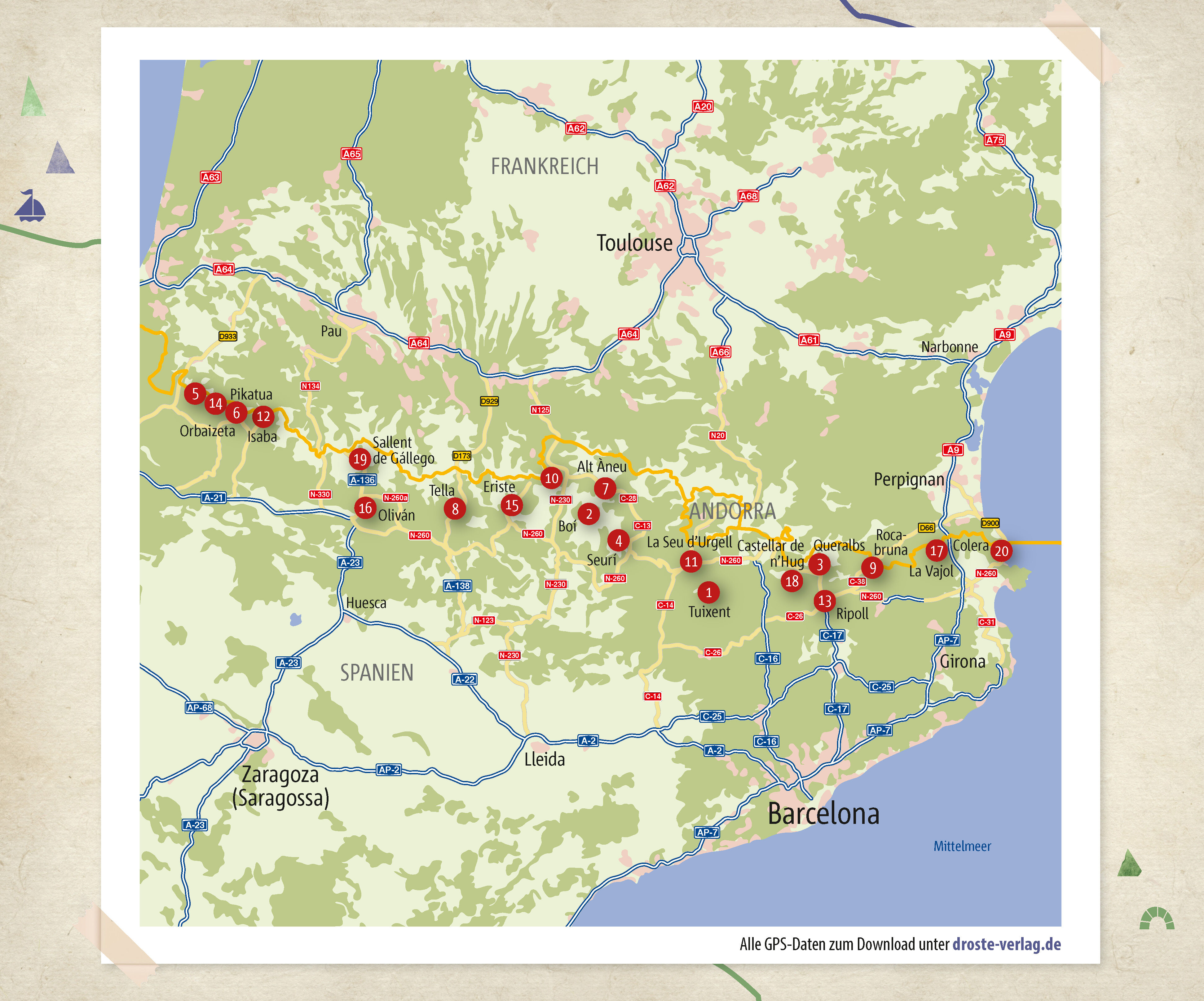 Grüne Wiesen, dichte Wälder und schneebedeckte Gipfel: Die mächtigen Pyrenäen ziehen sich vom Atlantik bis ans Mittelmeer. Auf ihrer sanfter abfallenden spanischen Südseite schlängeln sich wildromantische Wege durch nahezu unberührte Natur. In ursprünglichen B...