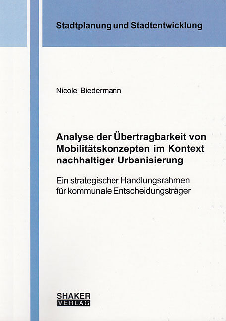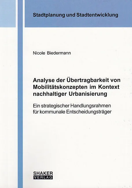 Der Megatrend Urbanisierung geht einher mit wachsendem Wohlstand und steigender Mobilitätsnachfrage, die überwiegend durch motorisierten Individualverkehr gedeckt wird. Die daraus resultierenden negativen Auswirkungen beeinflussen verschiedene Dimensionen der ...