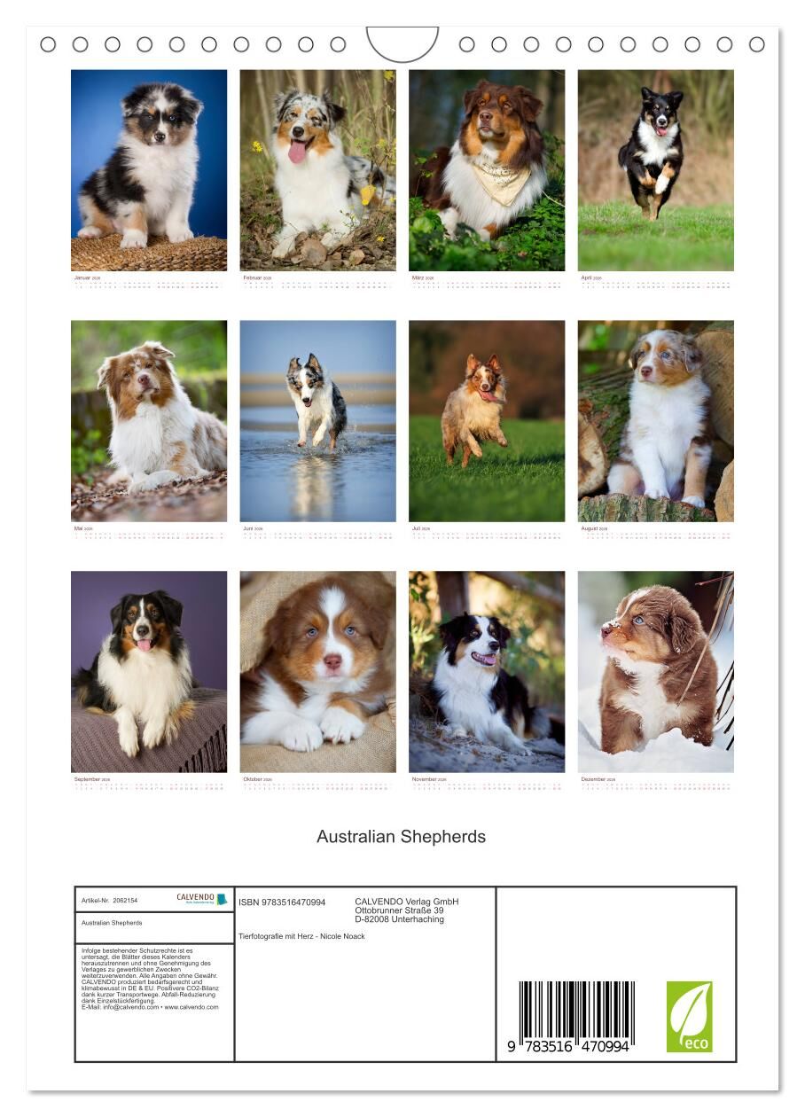 13 zuckersüße Australian Shepherds in ihrer herrlichen Farbenvielfalt sind in diesem Kalender für das ganze Jahr zusammengestellt. Wir wünschen viel Freude damit.