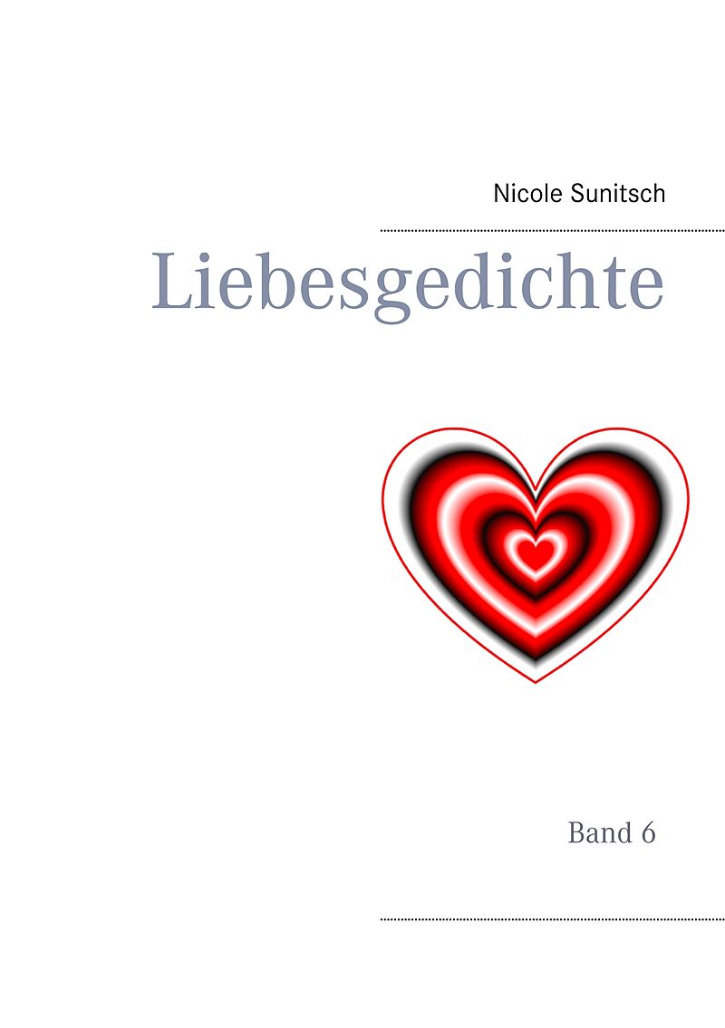 Nicole Sunitsch macht sich in ihrem Band 6 - Gedanken über die Liebe. Das Buch enthält über 70 Liebesgedichte. Die Liebe zum Partner, zur Mutter, zu unseren Mitmenschen sowie die Geschwisterliebe wird in diesem Buch in Versen wieder gegeben. Mit diesem Buch mö...