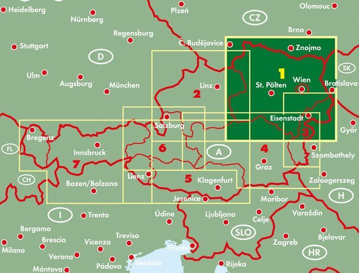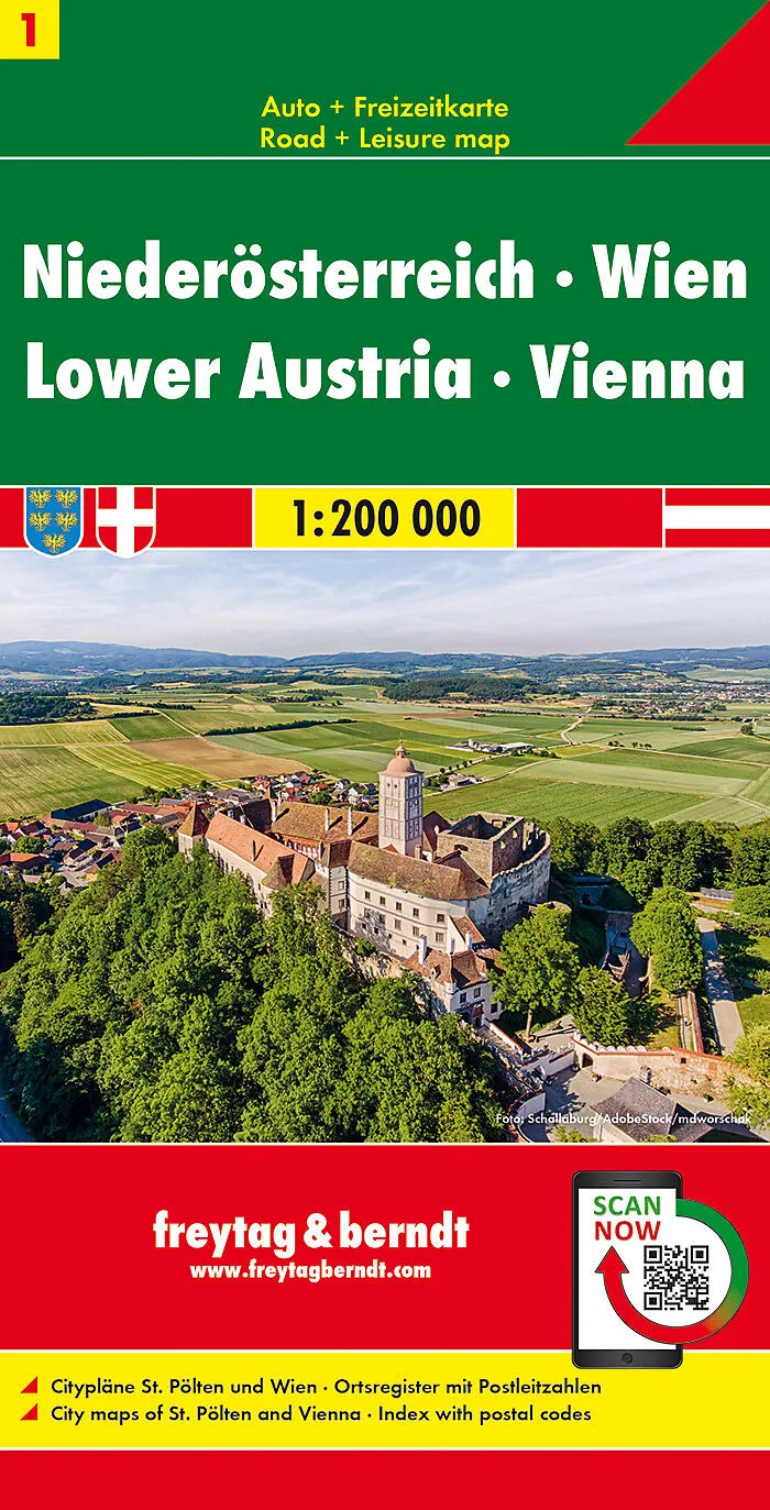 Mit der Straßenkarte Niederösterreich - Wien im Maßstab 1:200.000 finden sich Urlauber die mit Auto, Motorrad oder Wohnwagen unterwegs sind bestens zurecht. Das weit verzweigte Straßennetz ist exakt abgebildet, Entfernungen und viele Ausflugsziele sind in der ...