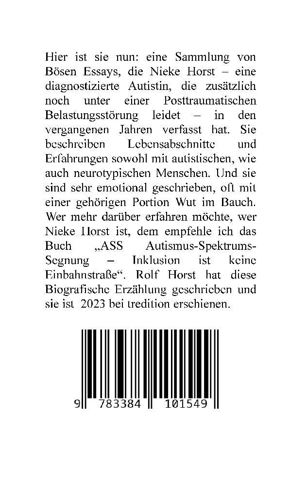 Böse Essays - Autismus, Psychotherapie, PTBS, Sucht, Alkoholismus, Neurodiversität, Postwachstum, Zen, Christenheit, Permakultur, Ökologie, ökolog. Fußabdruck, Diversität, Trauma, Insomnie