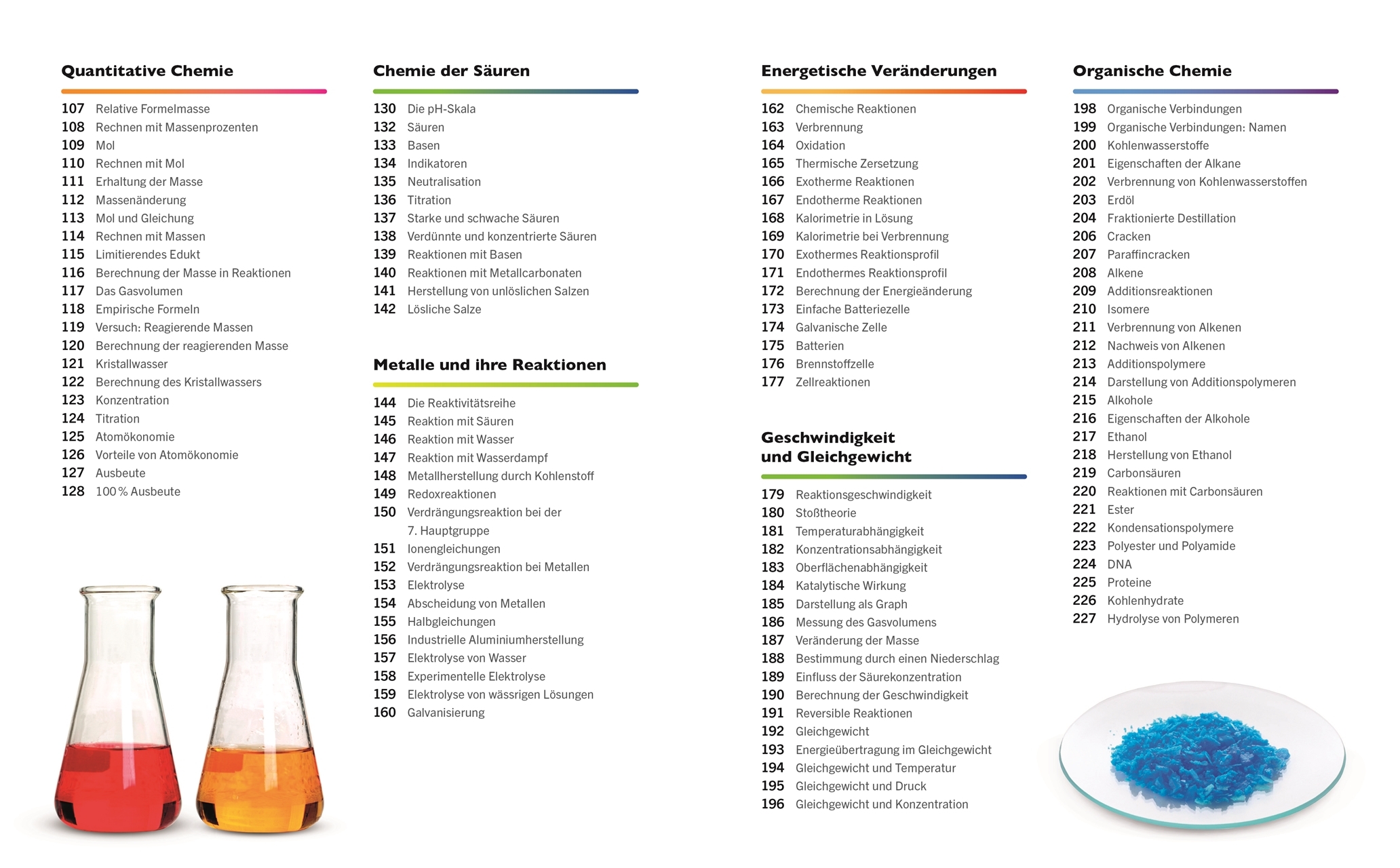 Umfangreiches Chemie-Buch für Schülerinnen Ein anschaulicher Einstieg in die Chemie ! Dieses Wissensbuch für Schülerinnen ab 12 Jahren beantwortet die brennendsten Fragen rund um die Welt der Stoffe : Was sind Moleküle? Wie berechnet man Stoffmengen und Volum...