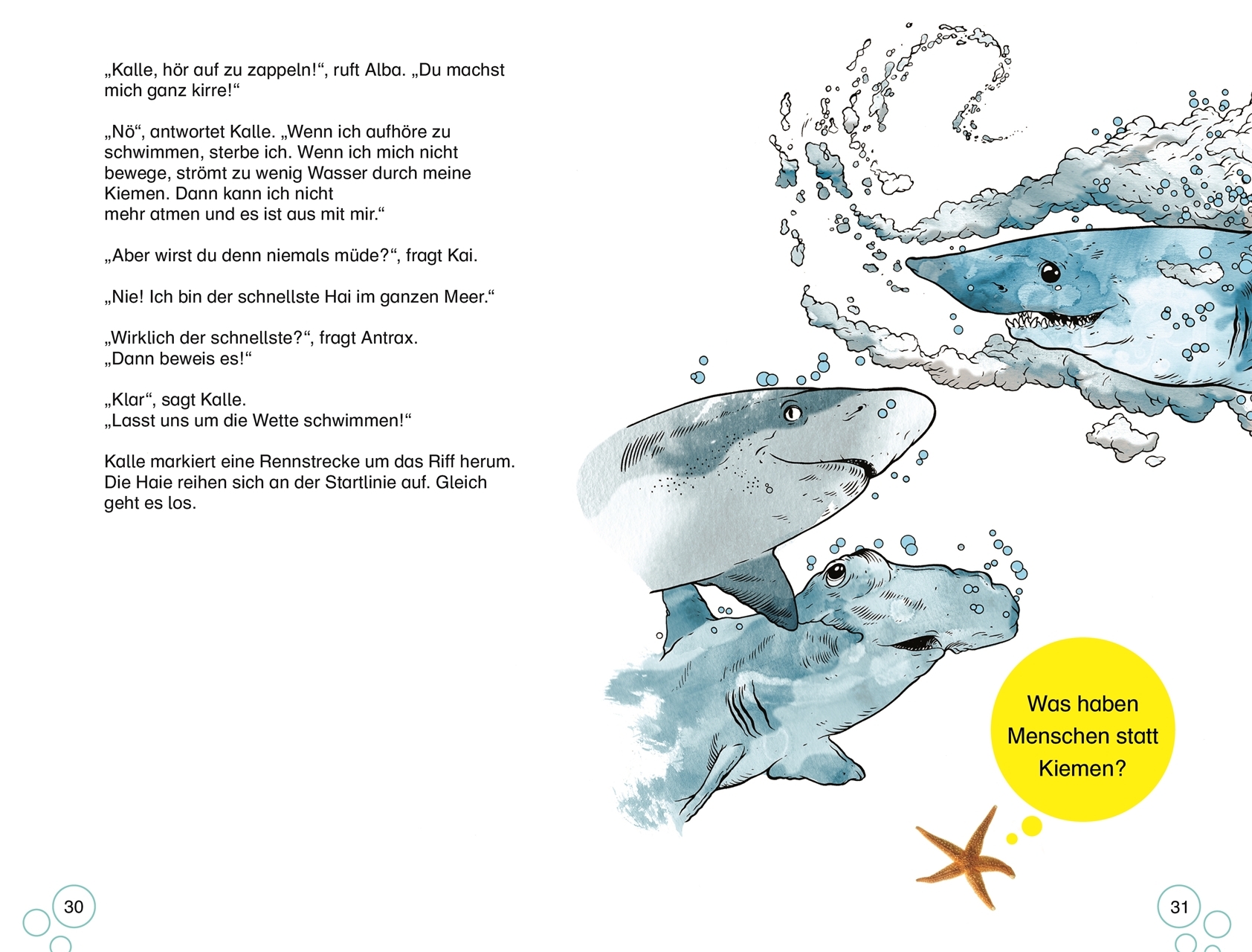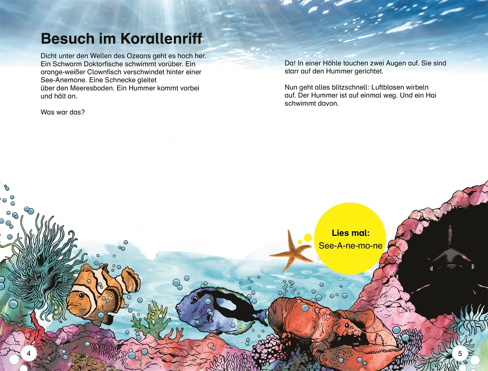 Lesen lernen mit Hai-Abenteuern Die Haie sind los! In diesem SUPERLESER!-Erstlesebuch begleiten die Leserinnen die beiden Riffhaie Alba und Antrax bei ihren Abenteuern tief unter Wasser. Sie veranstalten rasante Wettschwimmen, begegnen einem fiesen Hammerhai ...