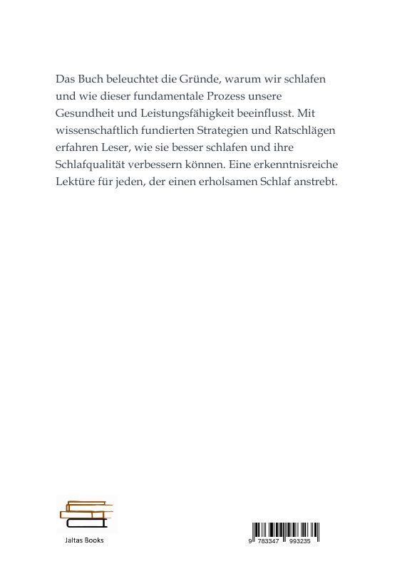 Das Buch beleuchtet die Gründe, warum wir schlafen und wie dieser fundamentale Prozess unsere Gesundheit und Leistungsfähigkeit beeinflusst. Mit wissenschaftlich fundierten Strategien und Ratschlägen erfahren Leser, wie sie besser schlafen und ihre Schlafquali...