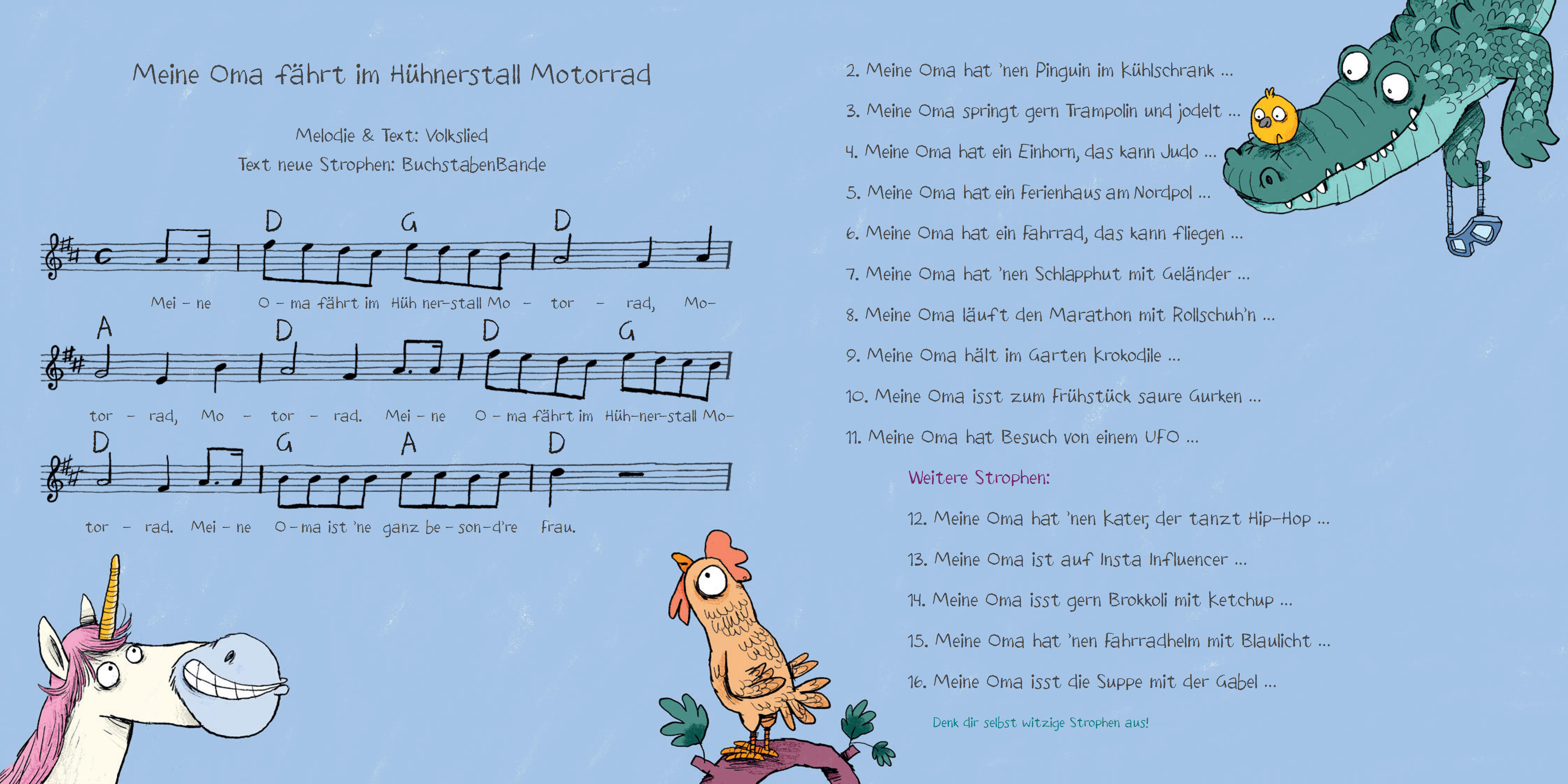 Meine Oma fährt im Hühnerstall Motorrad Wer kennt es nicht - das Quatschlied von der Oma, die mit ihrer heißen Kiste durch den Hühnerstall braust. Ein Klassiker, der in jeder Familie gesungen, geträllert oder laut mitgebrüllt wird. Nikolai Renger hat diesen ze...