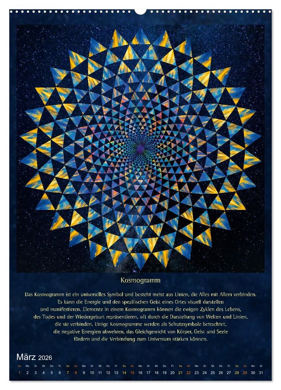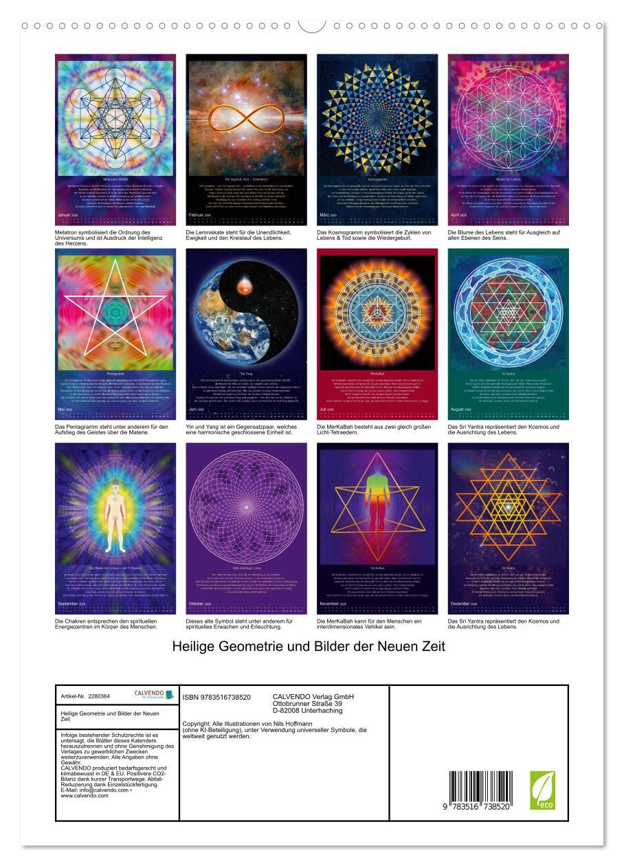 Dieser Kalender vereint universelle Symbole, die eine uralte, im Glauben an Gott oder eine höhere Macht tief verwurzelte Kraft haben. Heilige Geometrie kann dem Alltag eine Qualität der Ruhe und der tiefgreifenden Wandlung verleihen. Diese Bilder sind, aufgrun...