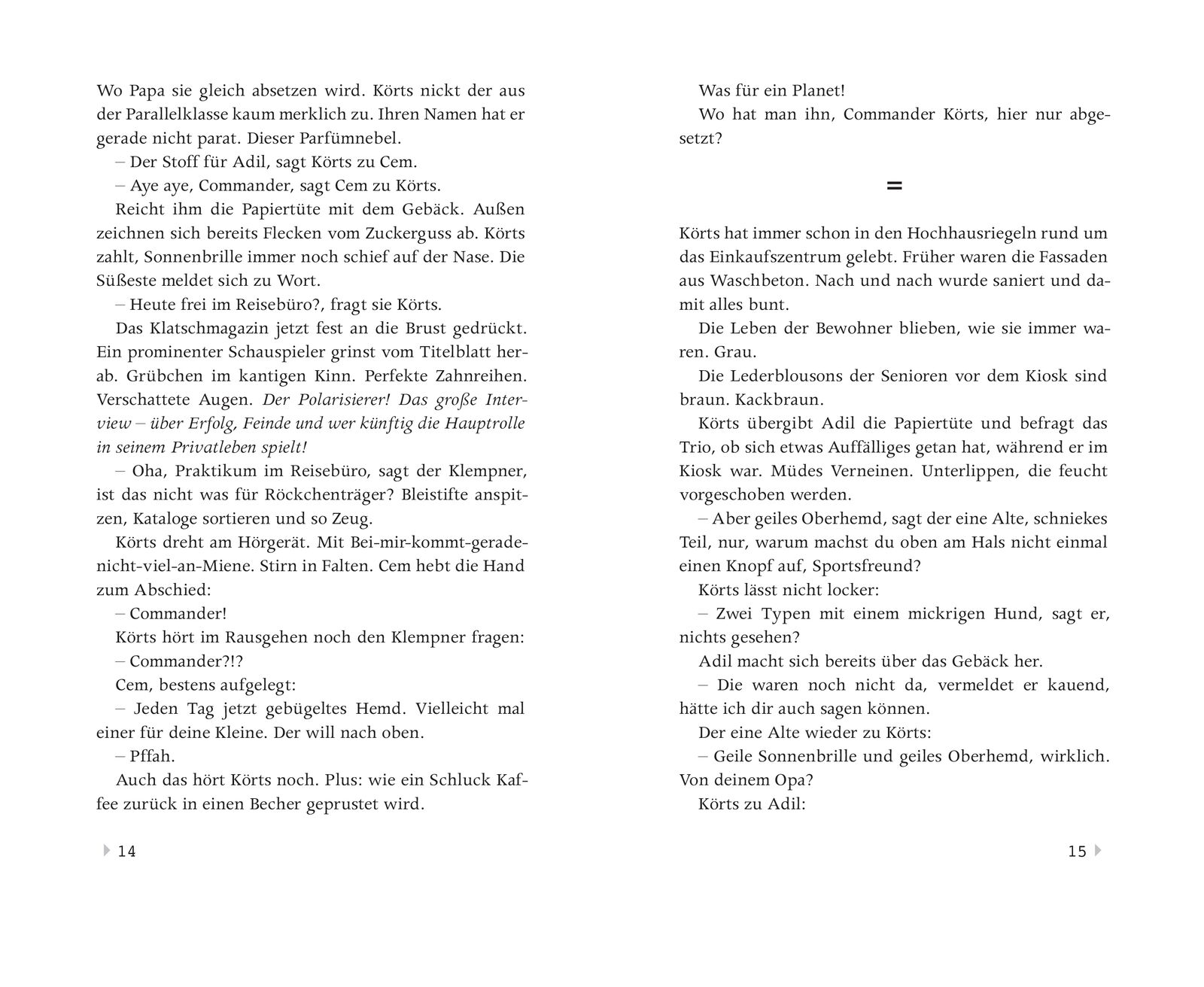 Was ist härter noch nicht ganz 16 zu sein oder schon Anfang 20? Körts, eine schräge Gestalt aus den Riegeln am Stadtrand, trägt seit neuestem gebügelte Hemden. Das Schülerpraktikum absolviert der 15-Jährige im Reisebüro des Einkaufszentrums. Er träumt von sei...