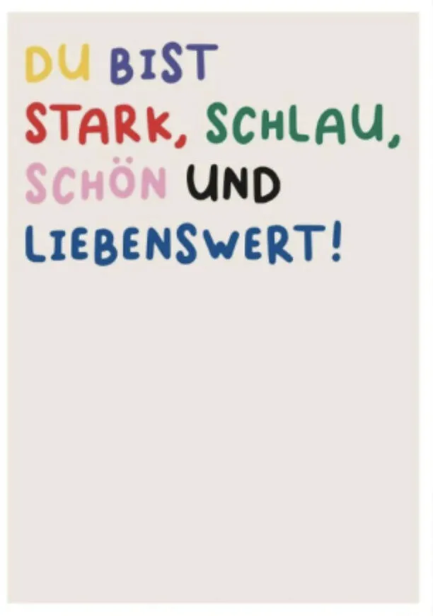 Diese Affirmation sollte in jedem Kinderzimmer zu finden sein: Du bist stark, schlau, schön und liebenswert. Jeden Abend geben wir unseren Kindern diese Worte mit auf den Weg ins Träumeland. Ein Poster, das nicht nur hübsch aussieht, sondern eine wichtige Erin...