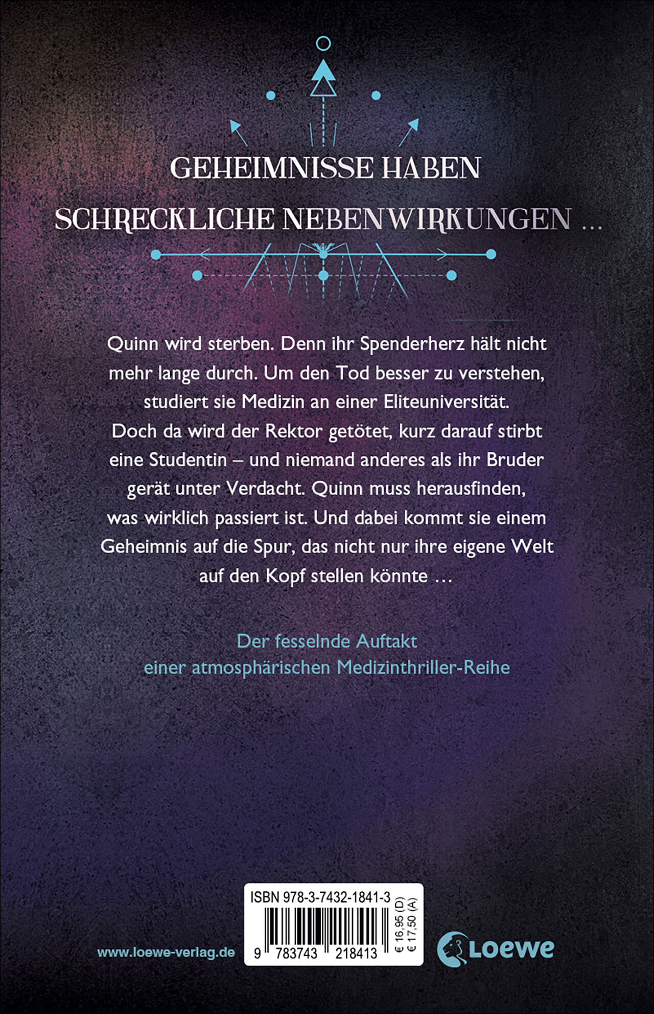 Loewe-Bücher: garantiert ohne KI Nominiert für den GLAUSER 2026 Krimipreis des SYNDIKATS in der Kategorie Jugendkrimi Geheimnisse haben schreckliche Nebenwirkungen Quinn wird sterben. Denn ihr Spenderherz hält nicht mehr lange durch. Um den Tod besser zu verst...