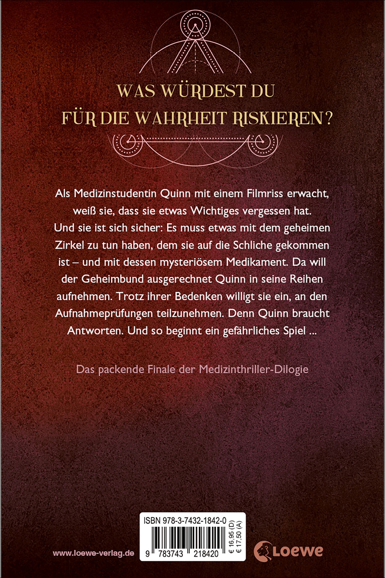 Loewe-Bücher: garantiert ohne KI Was würdest du für die Wahrheit riskieren? Als Medizinstudentin Quinn mit einem Filmriss erwacht, weiß sie, dass sie etwas Wichtiges vergessen hat. Und sie ist sich sicher: Es muss etwas mit dem geheimen Zirkel zu tun haben, de...