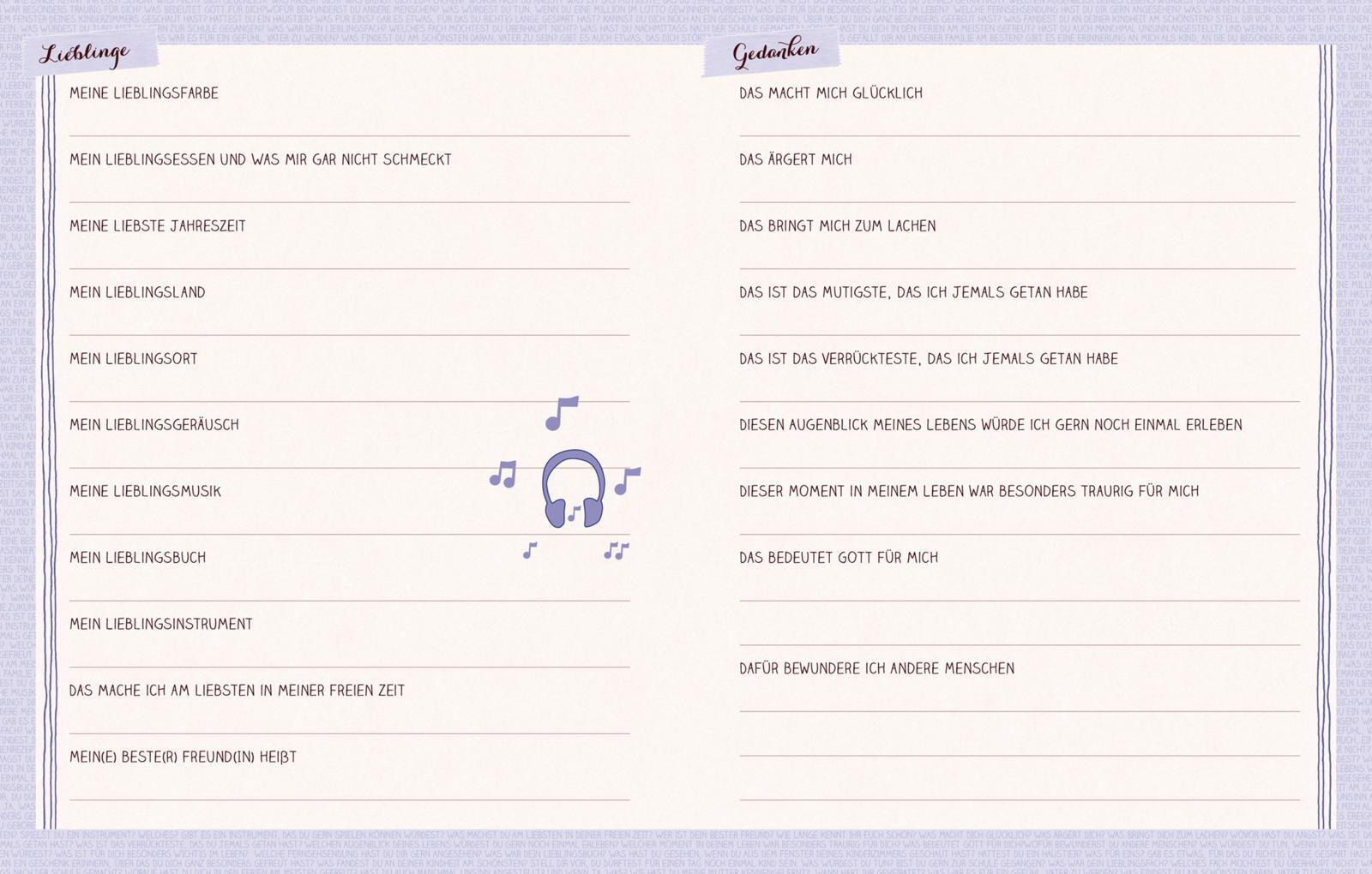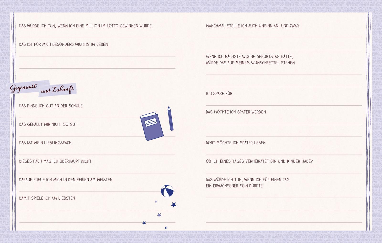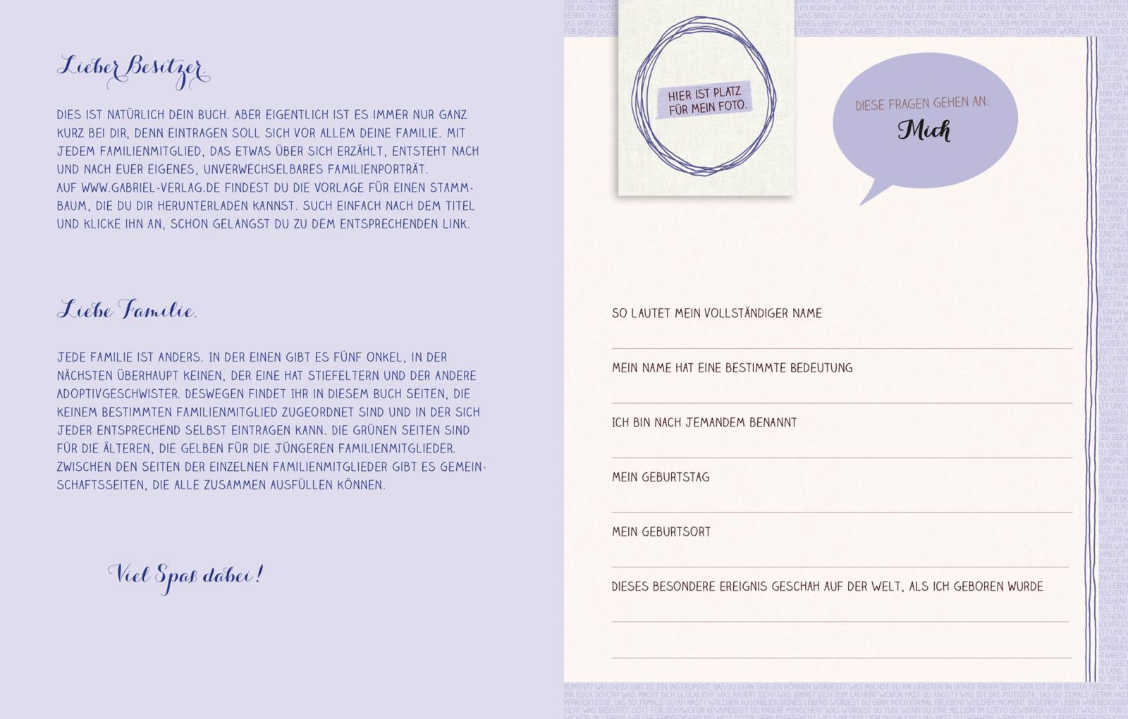 In diesem Album ist Platz für Oma, Opa, Mutter, Vater, Bruder, Schwester, Onkel, Tante ... und natürlich für den Besitzer selbst. In insgesamt über 1000 Fragen erzählen die Familienmitglieder von ihrer Kindheit und Jugend, äußern persönliche Gedanken und Wüns...