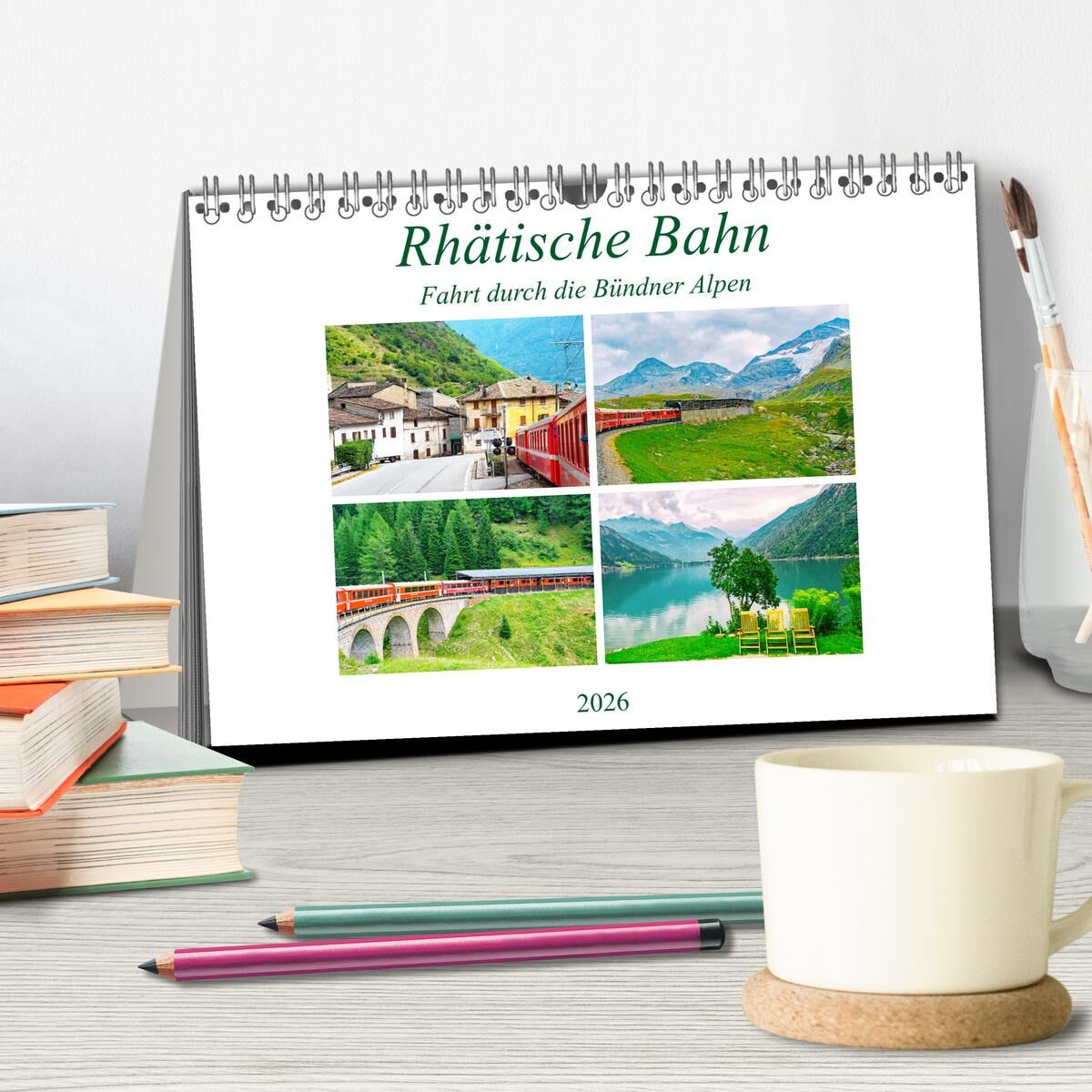 Rhätische Bahn - Fahrt durch die Bündner Alpen (Tischkalender 2026 DIN A5 quer), CALVENDO Monatskalender