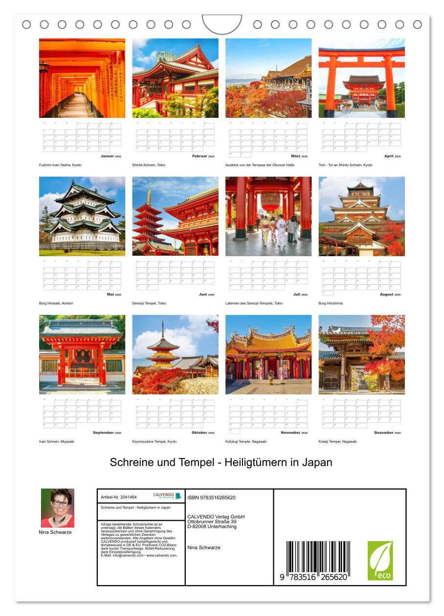 Schreine und Tempel - Heiligtümern in Japan (Wandkalender 2026 DIN A4 hoch), CALVENDO Monatskalender