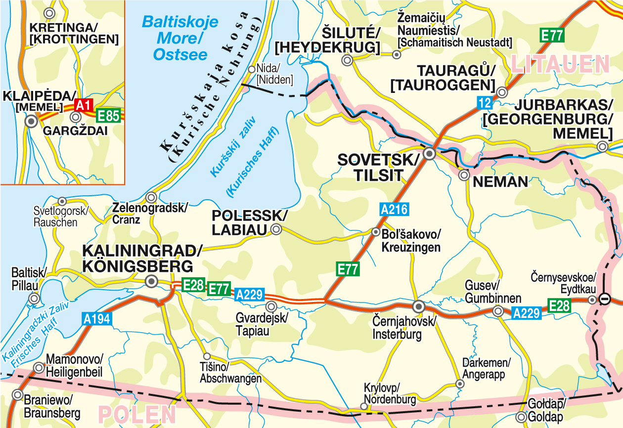 Straßenkarte 1:200 000 - 2-sprachig bis ins Detail - Mit separatem Ortsnamenverzeichnis - Innenstadtplan Kaliningrad / Königsberg - Mit Lupe - Mit Reisetipp