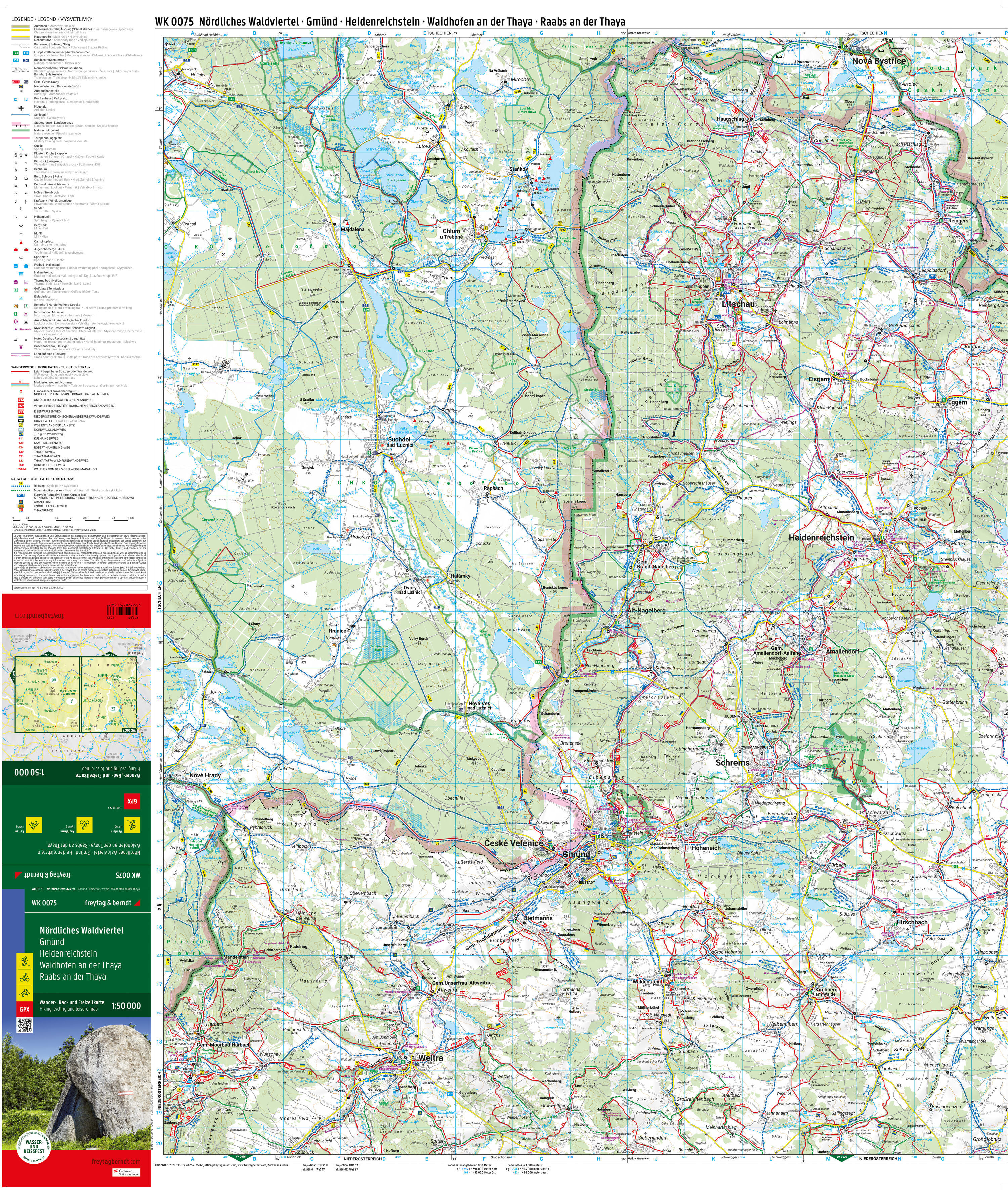 Die Wander-, Rad- und Freizeitkarte Nördliches Waldviertel bietet detaillierte Informationen über die Wander- und Radwege in der Landschaft im Norden Niederösterreichs. Das Thayaland und das Heidenreichsteiner Moor sind nur einige der vielen Wanderhighlights i...