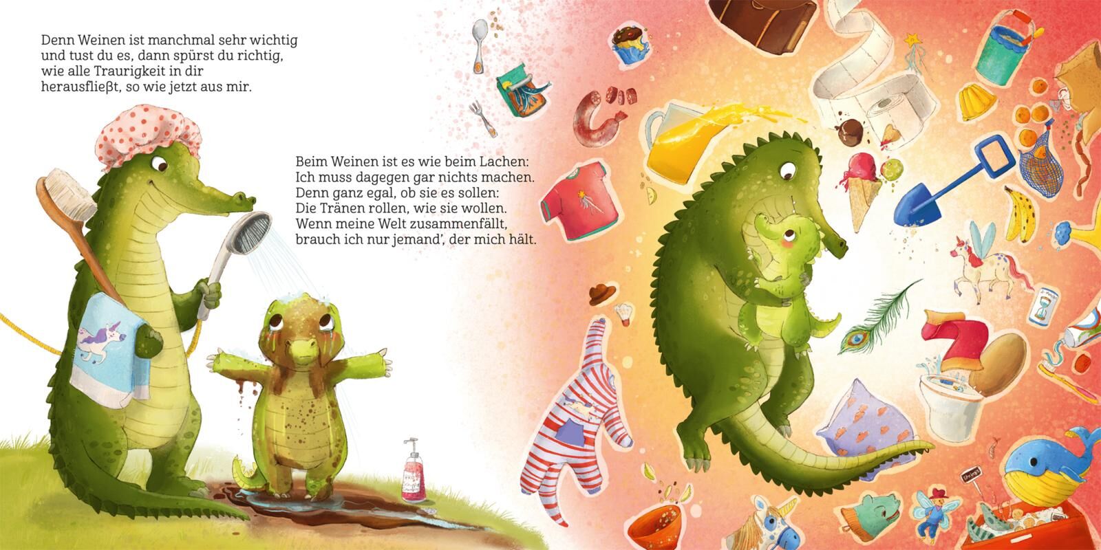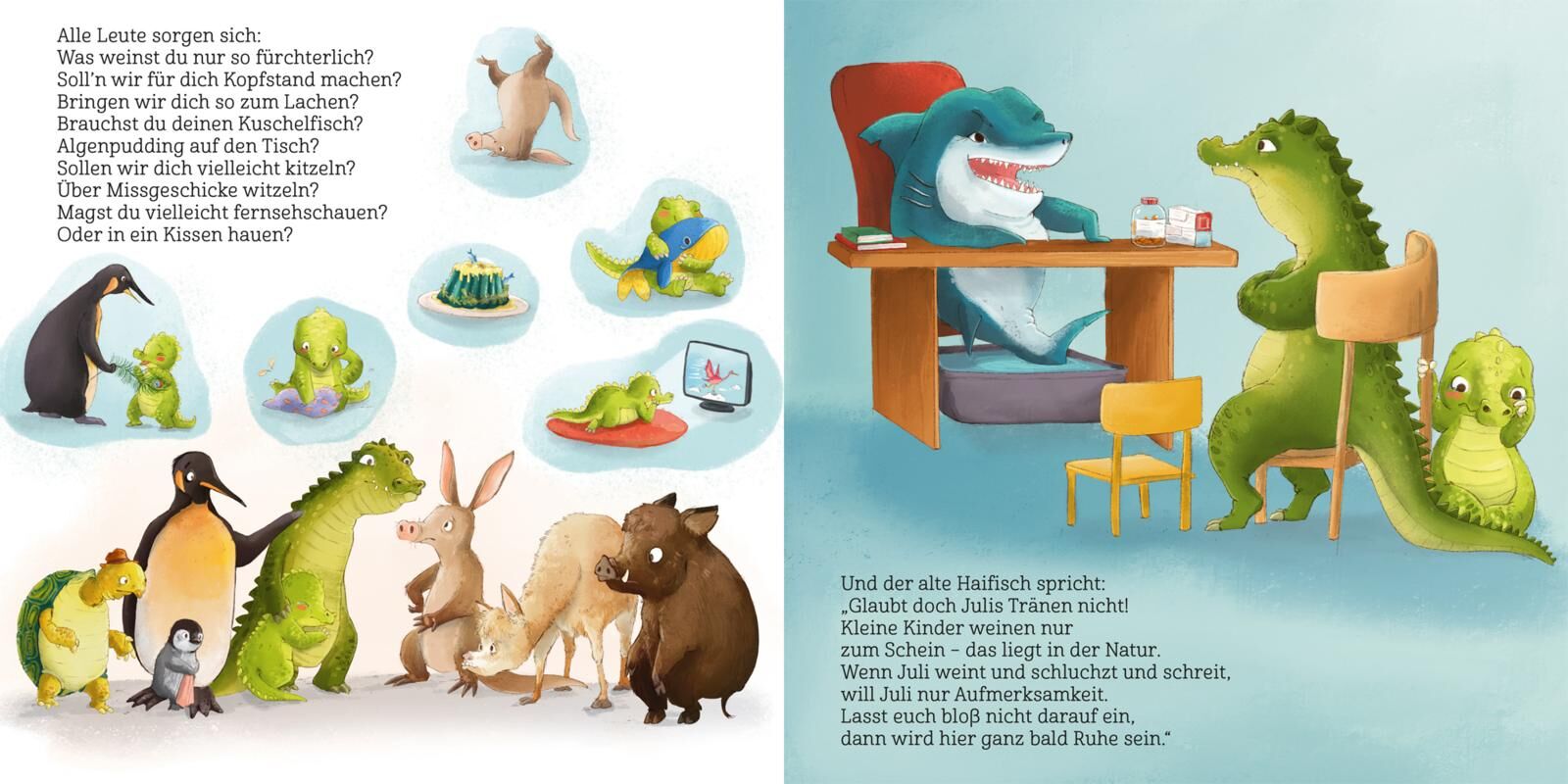 Was weinst du denn so viel, kleines Krokodil? Wunderbar stärkende Reimgeschichte mit einem wertschätzenden und liebevollen Blick auf die sensiblen Seiten aller Kinder » Mit Tränen bin ich übervoll, es stoppt nicht, wenn es aufhör'n soll. « So fühlt sich Juli, ...