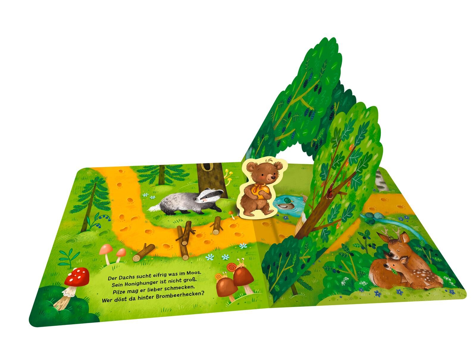 Spielspaß für die Kleinsten: Durch den Wald mit dem kleinen Bären Der kleine Bär mag Honig sehr. Wer wohl heute gemeinsam mit ihm nascht? Kinder ab 18 Monaten bewegen die Bären-Figur spielend durch den Wald und begegnen dabei den beliebtesten Tieren . Der Has...