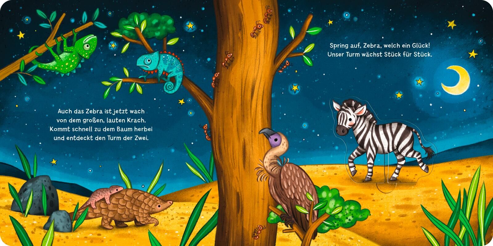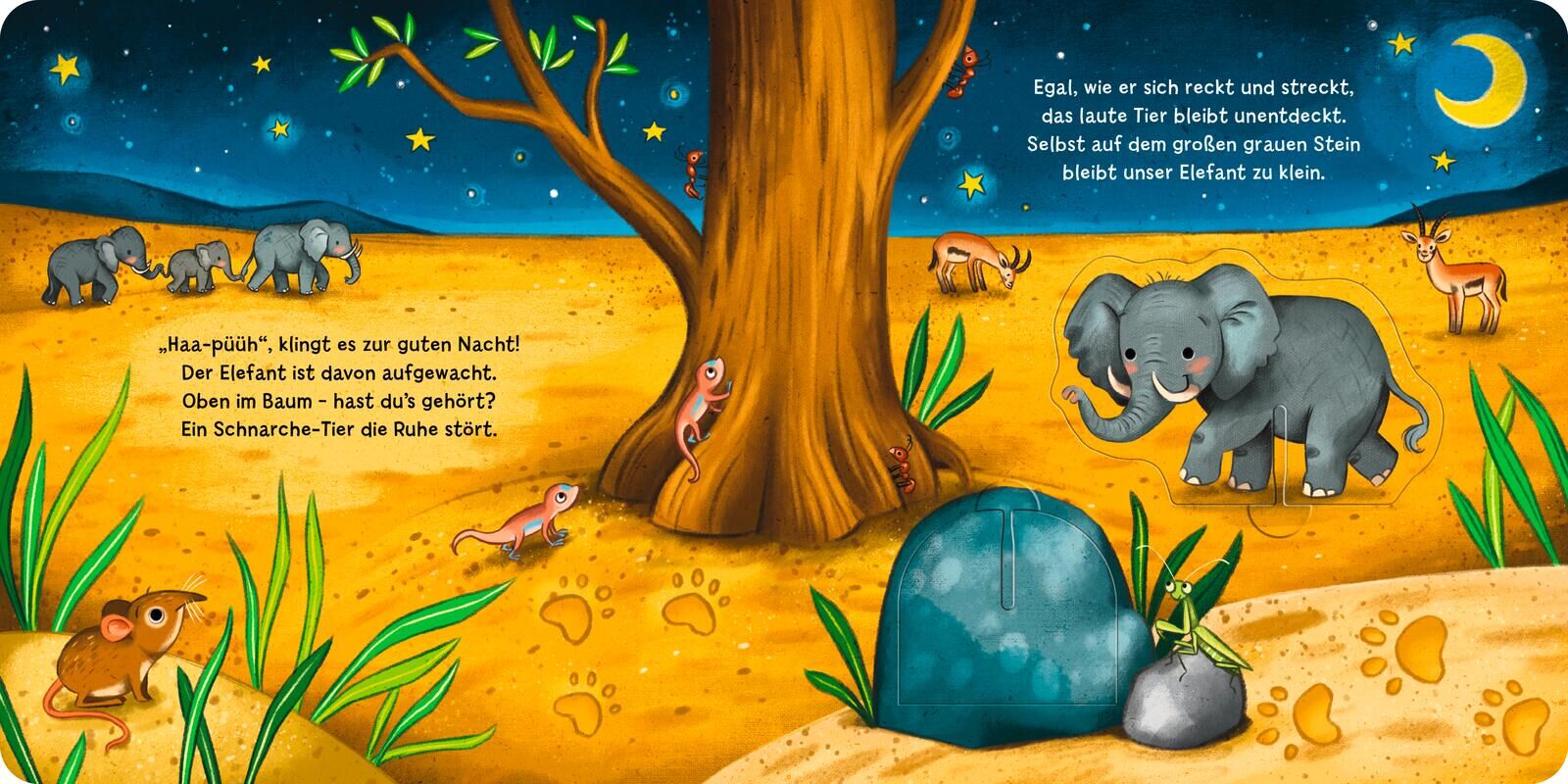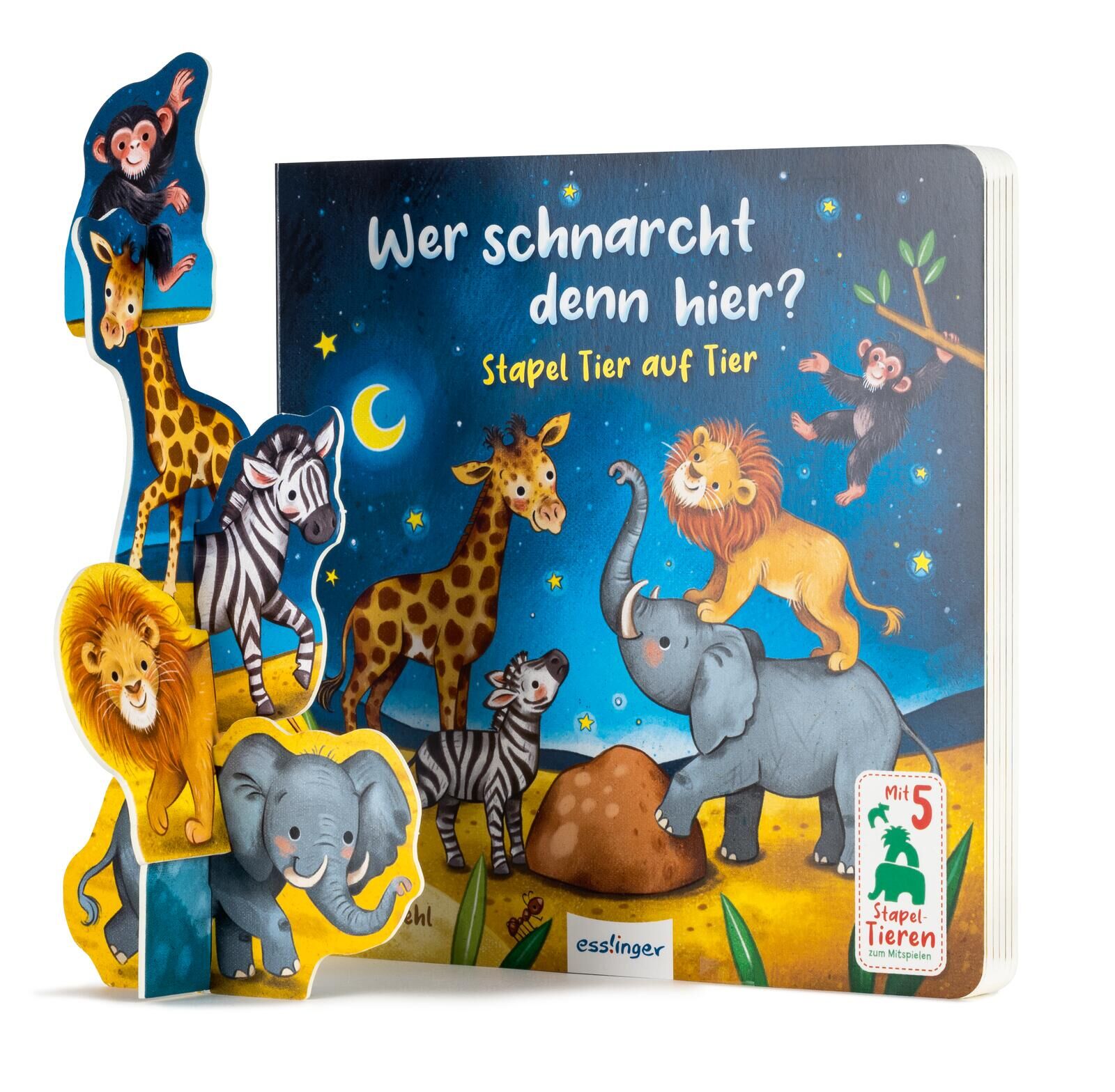 Buch und erster Stapelspaß in Einem! Für Kinder ab 2 Jahren Der kleine Elefant und seine Freunde können nicht schlafen. Finde mit den Tieren heraus, wer hoch oben im Baum schnarcht und die Nachtruhe stört: Wer kann den Löwen auf den Elefanten stellen, das Zeb...