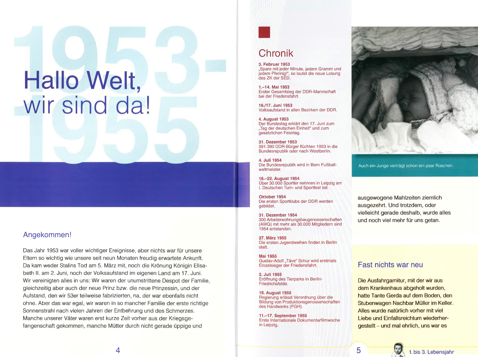 Aufgeregt und erwartungsvoll, so blickten wir damals in die Zukunft! Erinnern Sie sich mit uns an die ersten 18 Lebensjahre an Ihre Kindheit und Jugend! Jahrgang 1953 - das war die Generation, in deren Geburtsjahr Stalin starb, die Arbeiter in der DDR den Aufs...