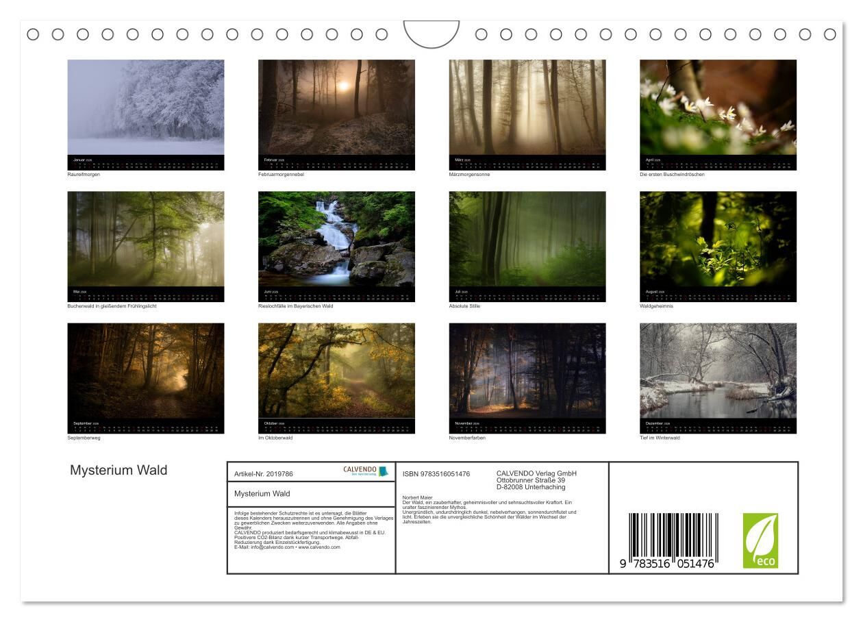Mysterium Wald (Wandkalender 2026 DIN A4 quer), CALVENDO Monatskalender