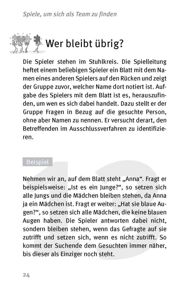 Die 50 besten Spiele für mehr Teamgeist. Für 8- bis 12-Jährige Jetzt sind wir ein Team: Teambuilding mit Kindern in Schule und Verein In einer Schulklasse, im Hort oder einem Verein treffen Kinder mit unterschiedlichen Charakteren und Interessen zusammen. Sie ...