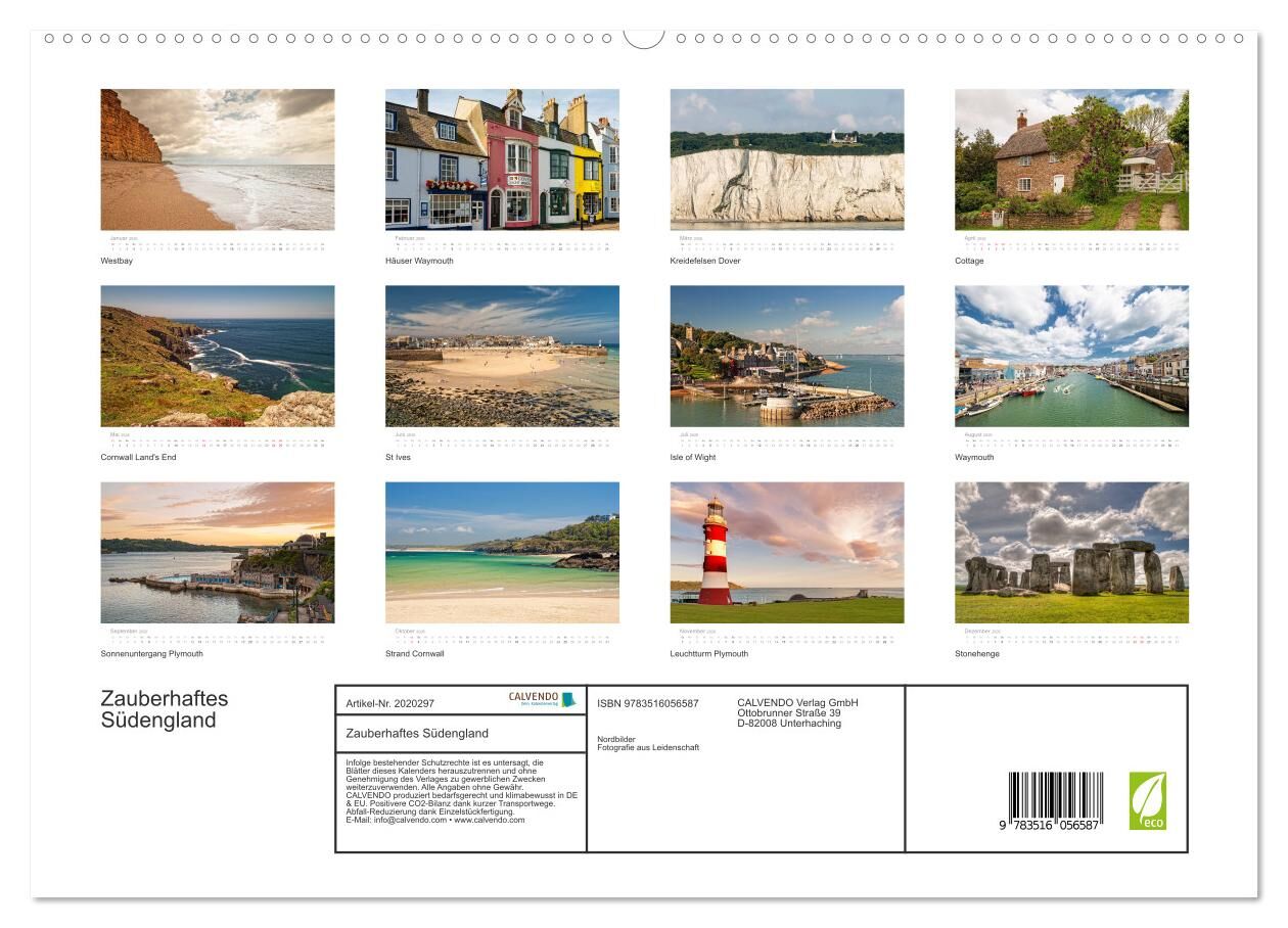 Zauberhaftes Südengland (hochwertiger Premium Wandkalender 2026 DIN A2 quer), Kunstdruck in Hochglanz