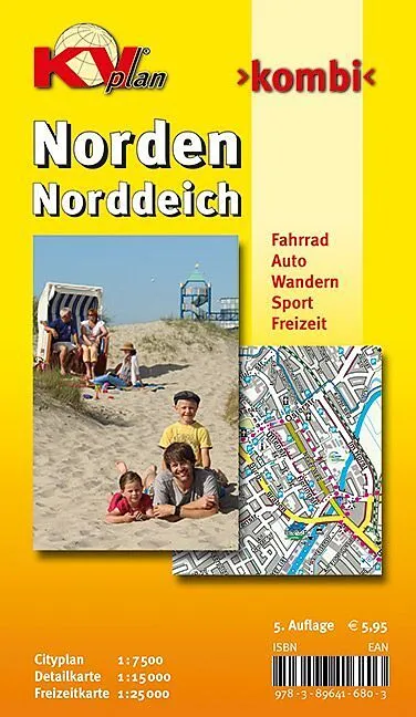 Der KVplan Norden/Norddeich kombiniert in seiner 5. Auflage Alltags- und Freizeitinformationen und weist folgende Merkmale auf: R A D K A R T E - touristische Radrouten (u.a. "Seeräuber und Häuptlinge", NSCR, RadupPad, Friesische Mühlentour, Dortmund-Ems-Kanal...