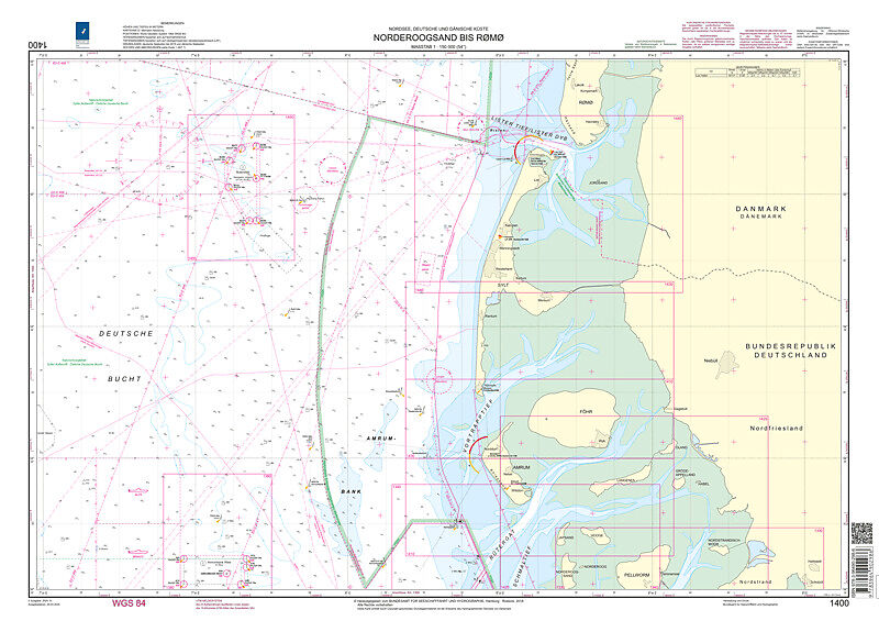 Amtliche deutsche Seekarte des Bundesamtes für Seeschifffahrt und Hydrographie für den Bereich der Nordfriesischen Inseln (Nordsee)