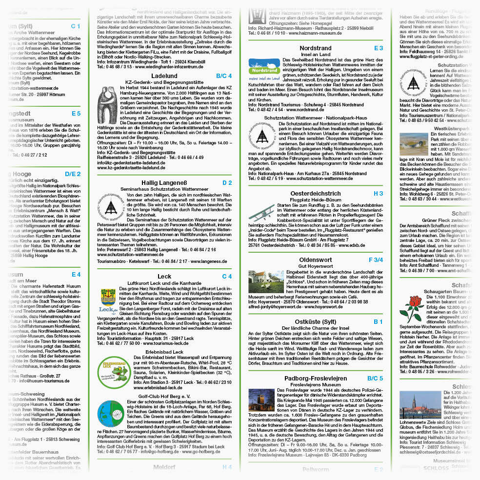 Der Kartenausschnitt des Erlebnisführers Nordfriesland, Nordseeküste präsentiert Erlebnisreiches von Heide bis Flensburg, von Eiderstedt bis Sylt. Auch das dänische Grenzgebiet ist noch im Blick. Schifffahrtsangebote, Besuche von Schutzstationen am Wattenmeer ...