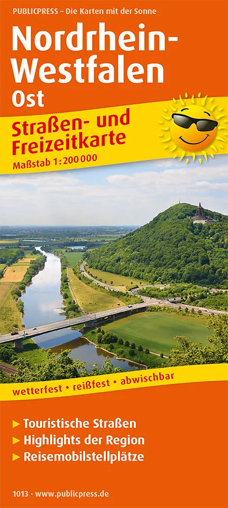 Straßen- und Freizeitkarte für Nordrhein-Westfalens Osten mit touristischen Straßen, Highlights der Region und Reisemobilstellplätzen. Schnelle Orientierung durch das übersichtliche Straßennetz. In bewährter PUBLICPRESS-Qualität: wetterfest, reißfest, beschrif...